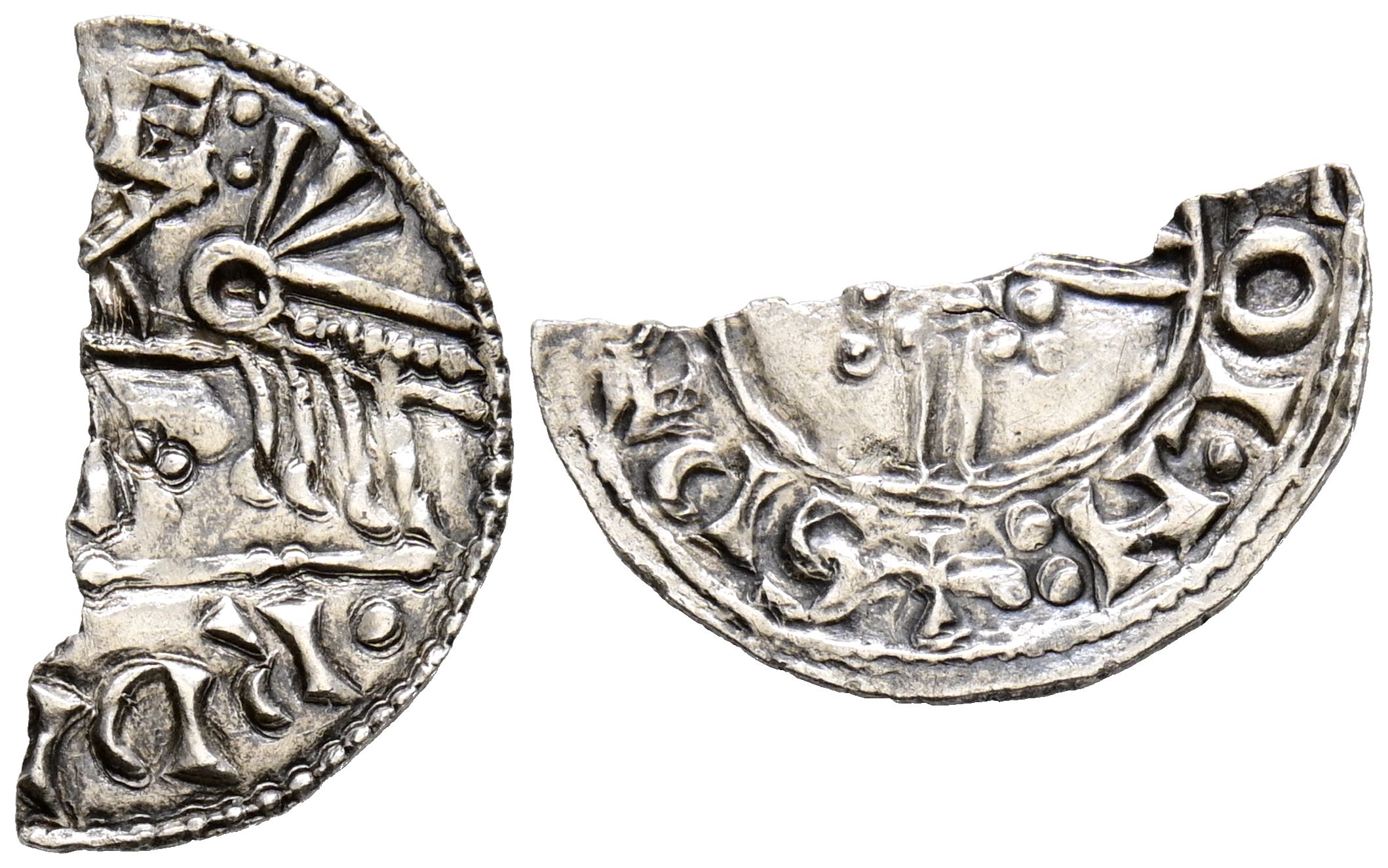 ENGLAND, Edward the Confessor (1042-1066). Penny. (Ar. 0.64g/ 18mm). 1046-1048. Eoferwic (York). Quadrilateral type of clubs. (Freeman 23; North 817, Seaby 1174). Anv: Bust to the left with diadem, chlamys and scepter, around legend: EDDE RD REX. Rev: Double line cross with angled central square topped by clovers, all within a circular graphic, around legend: CINSTAN ON DOIRI. Good Fine. Fraction of 50%. Rare.