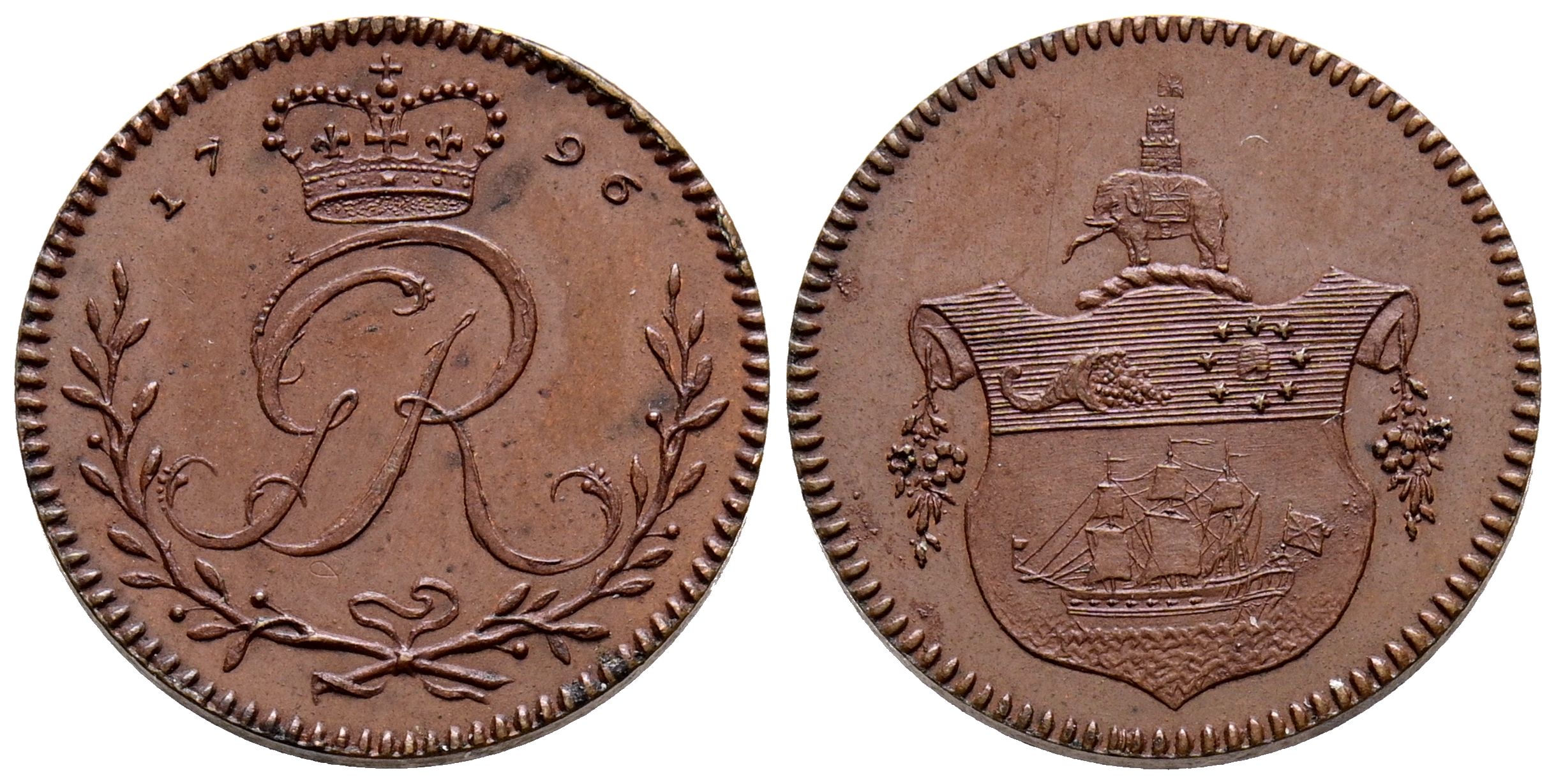 GOLD COAST (British), George III. 1 Tackoe. (Ae. 1.85g/17mm). 1796. Ghana. (Km#TPn1). Extremely Fine. Scarce and more so.
