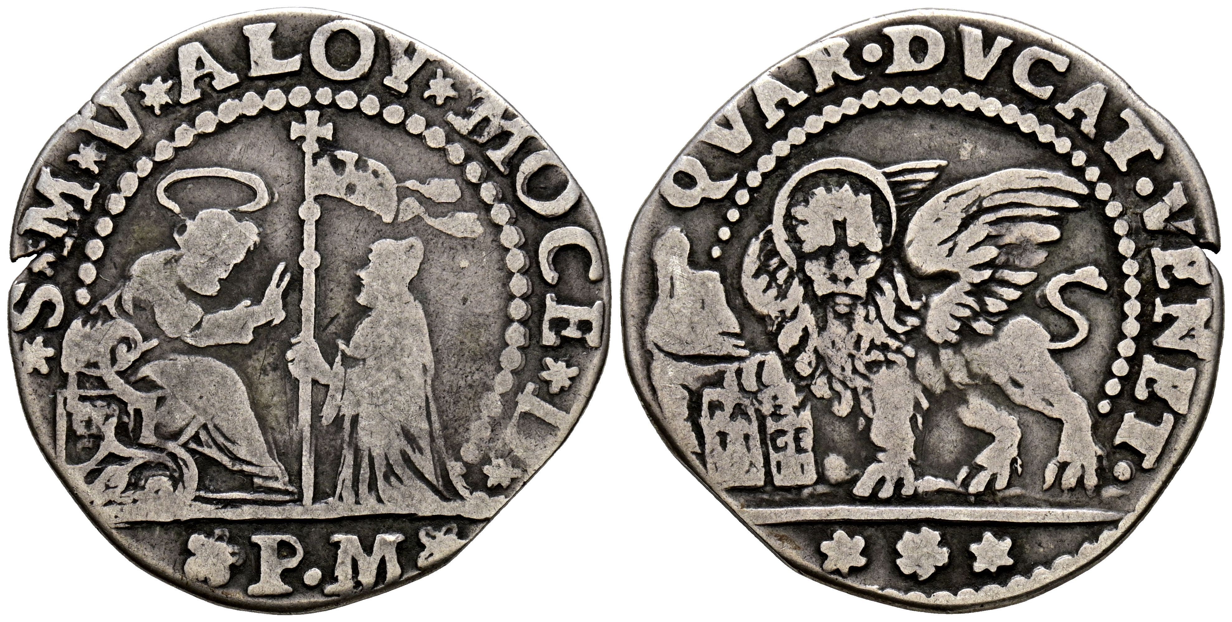 English ITALY. 1/4 Ducato. (Ar. 5.21g/28mm). S/D (1707-1709).Venice PM. (Km#447). Very Fine. Limited.