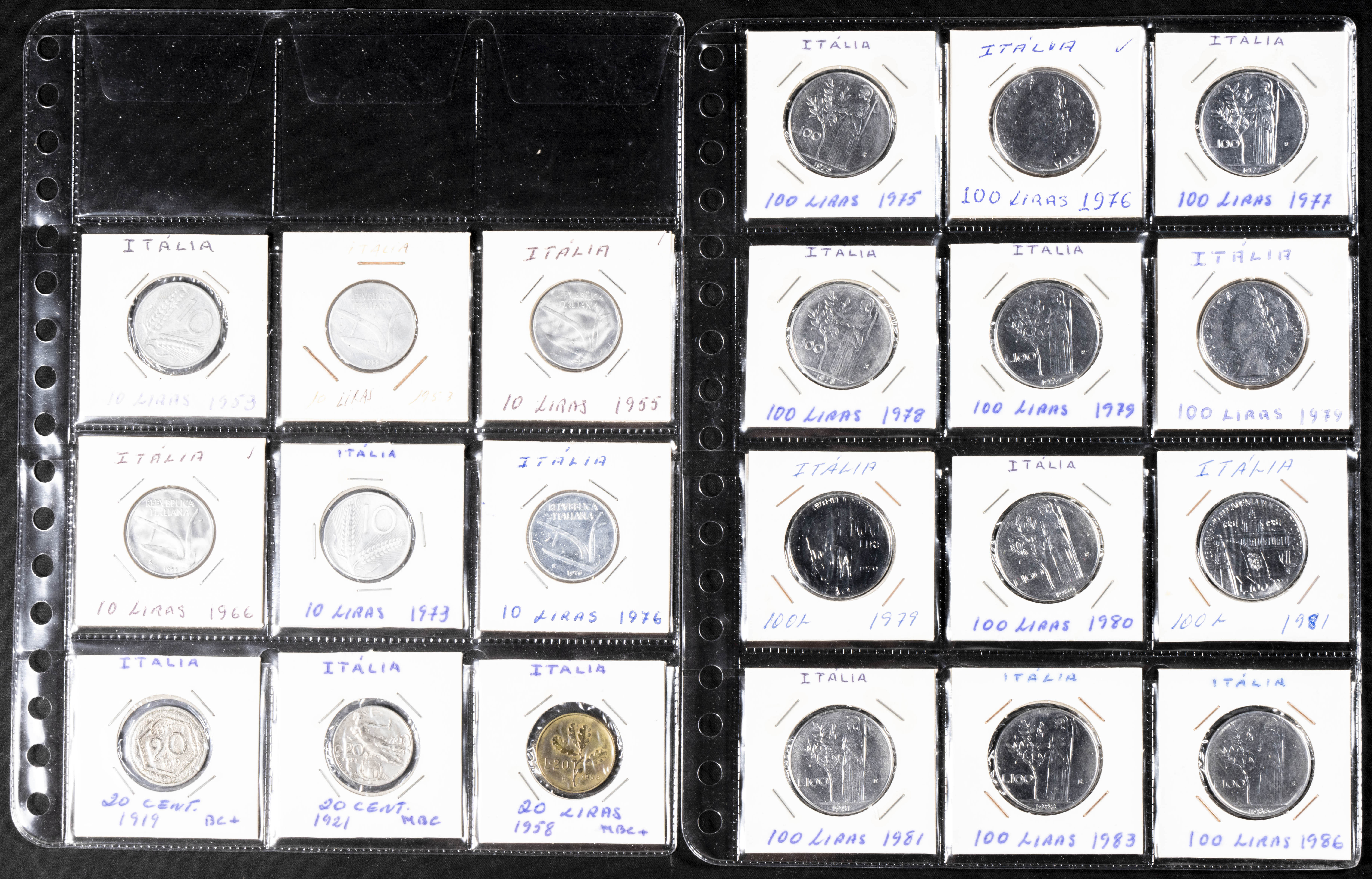 ITALIA. Bonito conjunto de alrededor de 90 monedas acuñadas a lo largo del siglo XX. Variedad de fechas y módulos. Buenas conservaciones generales. A EXAMINAR.