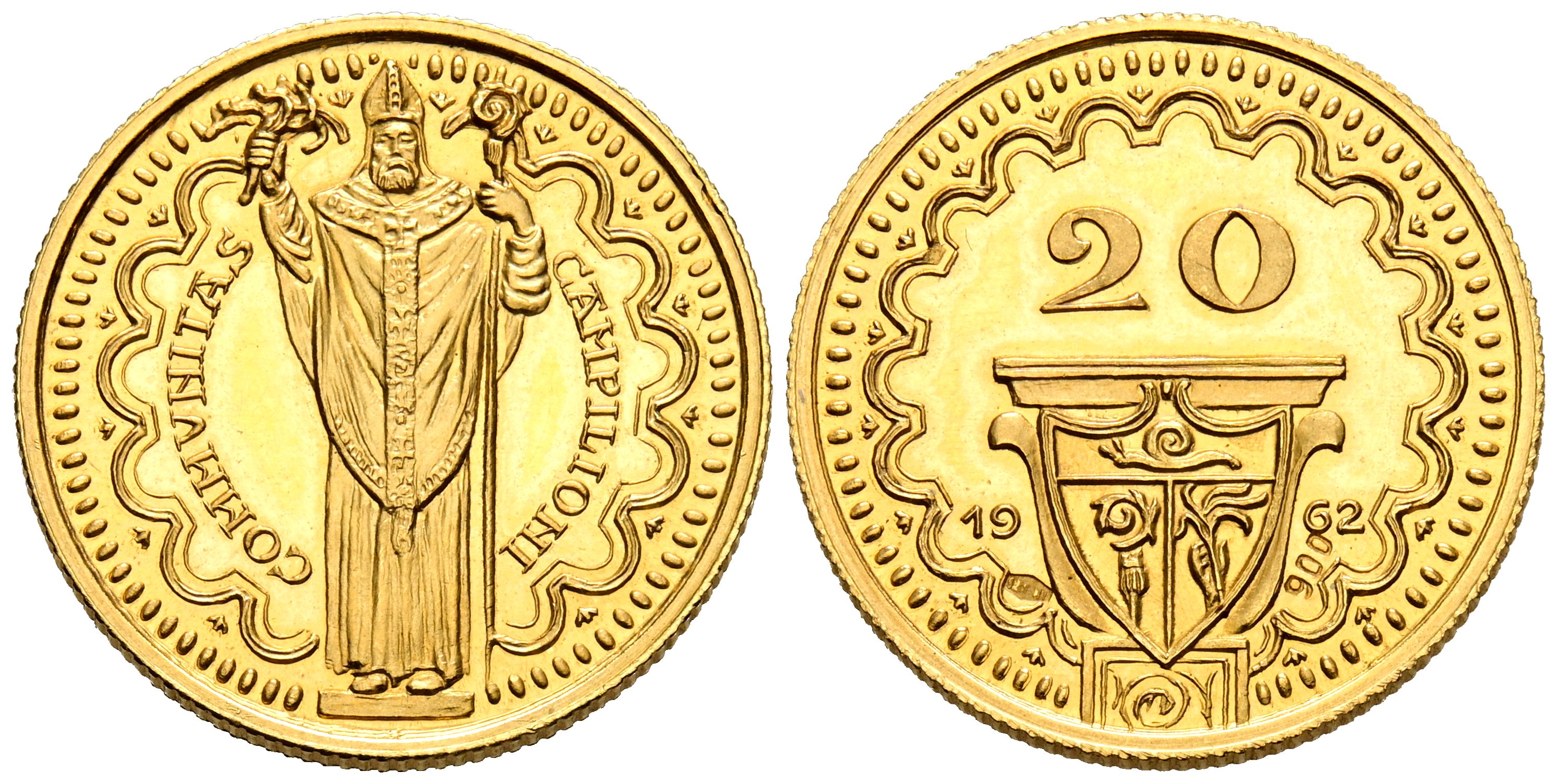 ITALIA. 20 Francos (Au. 6,04g/16mm). 1962. Campione. Curiosa moneda acuñada por Argor-Heraeus para el Casino de esta localidad perteneciente a Italia pero enclavada en suelo suizo. Estas piezas acuñadas entre 1950 y 1972 llevan la leyenda de "Communitas Campilioni" (Comunidad -Ciudad de Campione). PROOF. Escasa.