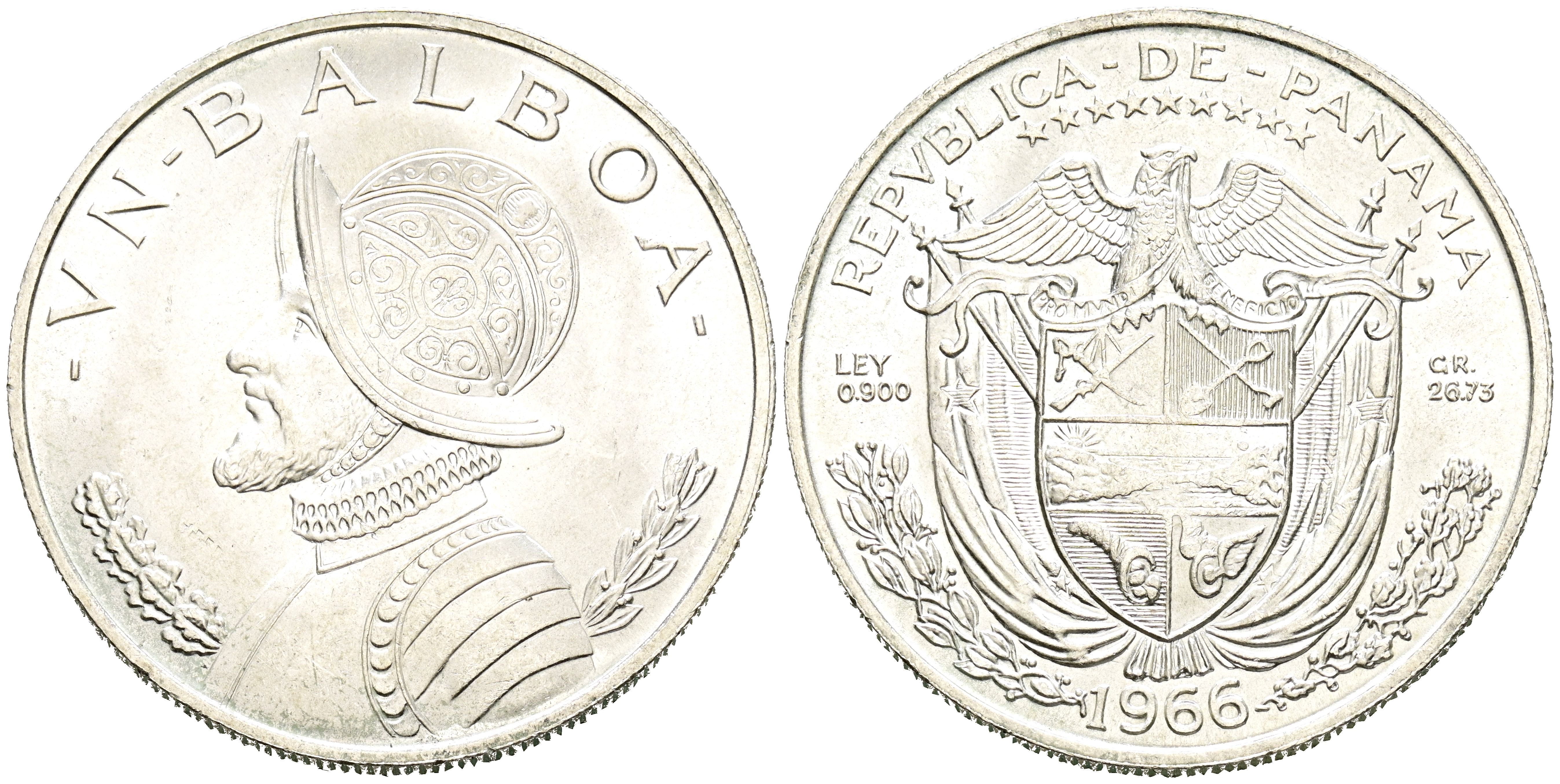 PANAMA. 1 Balboa. (Ar. 26.91g/38mm). 1966. (Km#27). Almost Uncirculated.