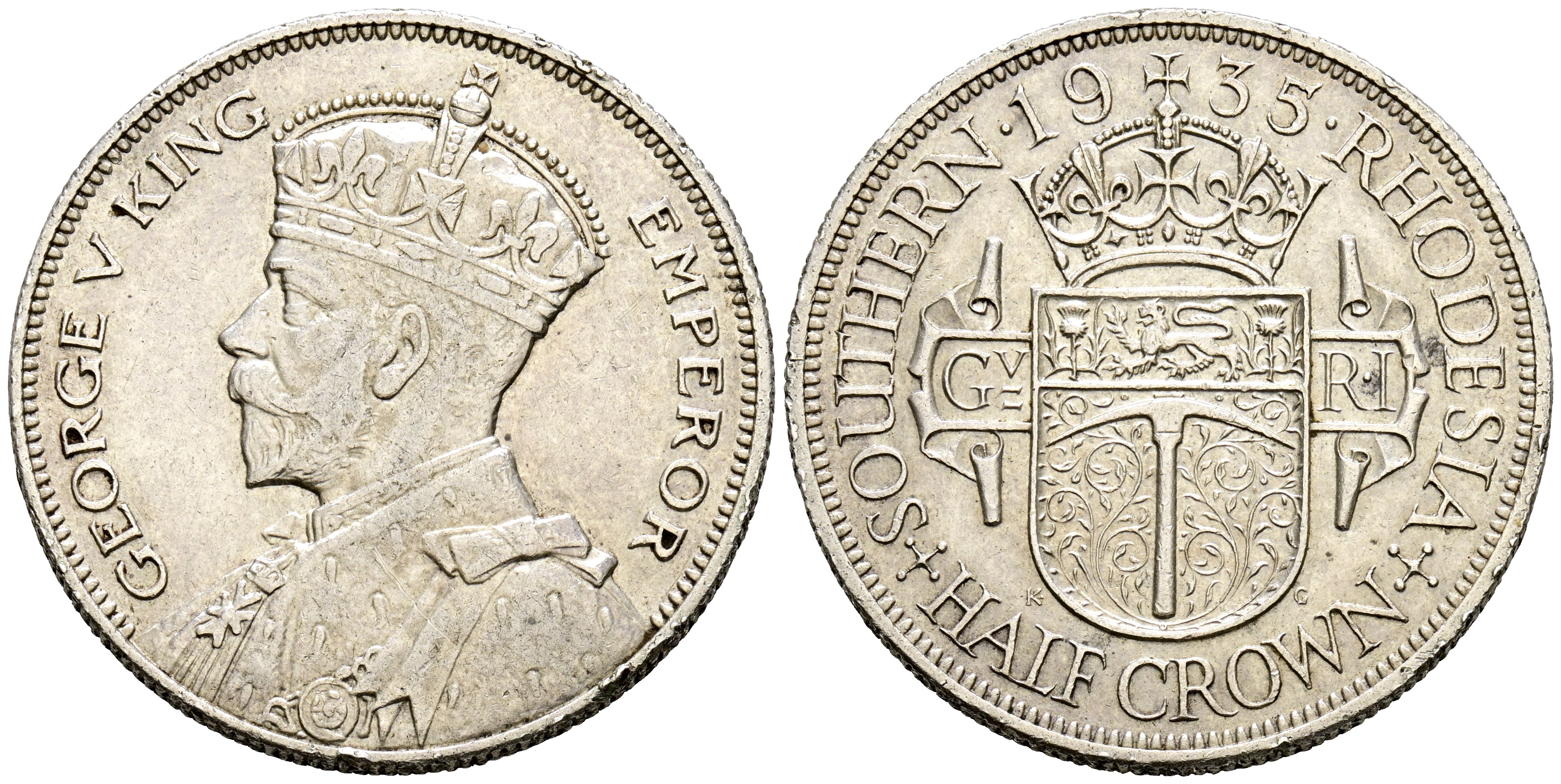 SOUTHERN RHODESIA. 1/2 Crown. (Ar. 14.14g/32mm). 1935. Jorge V. (Km#5). Good Very Fine/ Almost Extremely Fine.