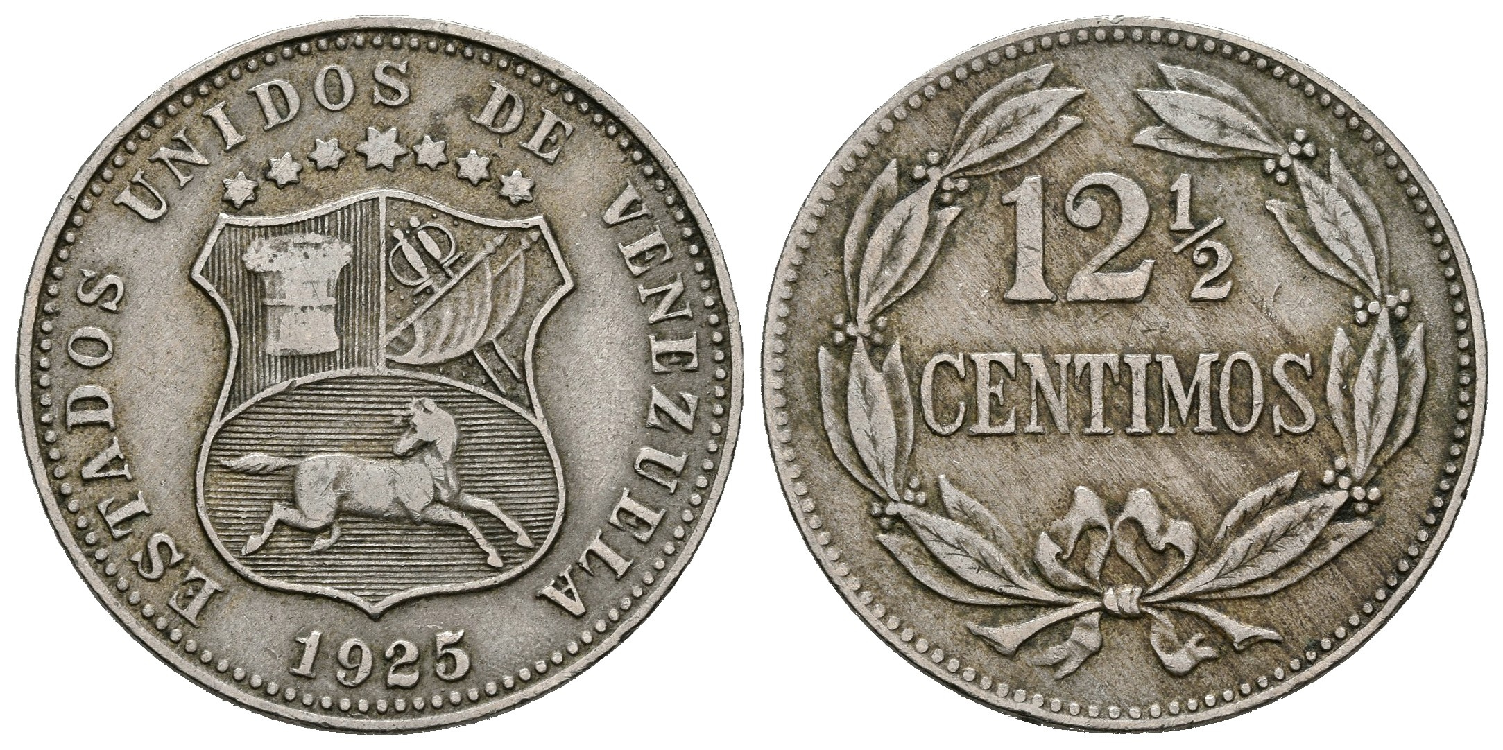 English UNITED STATES OF VENEZUELA. 12 1/2 Cents. (CuNi. 5.00g/23mm). 1925. Philadelphia. (Km#Y28). Good Very Fine.