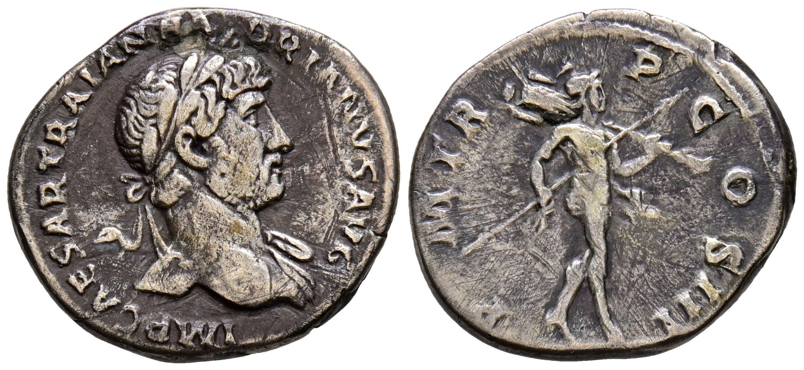 HADRIAN. Denarius. (Ar. 2.87g/19mm). 121 AD Rome. (RIC 67). Anv: Laureate bust of Hadrian on the right with draping on the left shoulder, around legend: IMP CAESAR TRAIAN HADRIANVS AVG. Rev: Mars advancing to the right carrying a spear and trophy, around legend: PM TR P COS III. Very Fine.