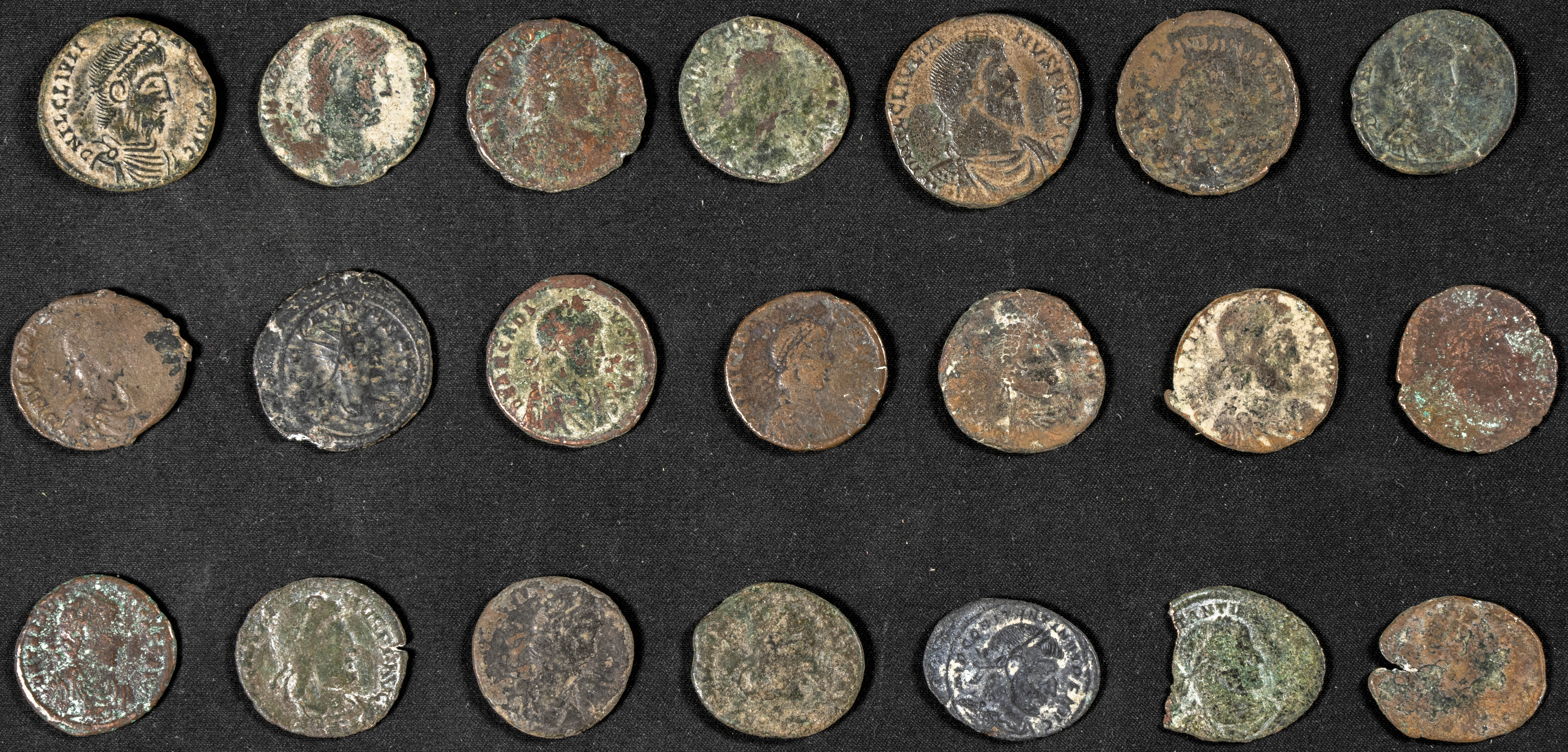 Set of 33 small bronzes from the late Roman Empire of different emperors. TO EXAMINE.