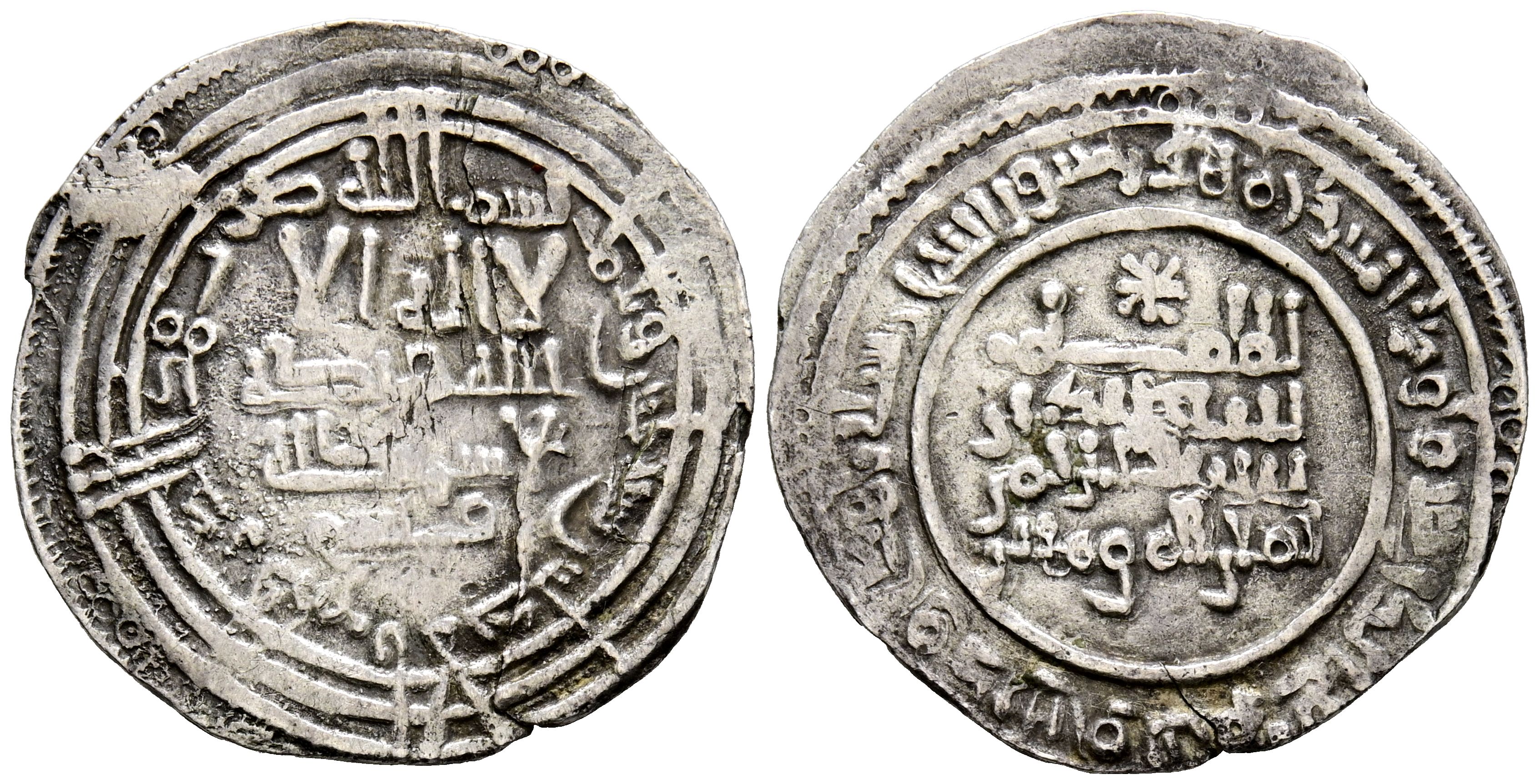 English CALIPHATE OF CÓRDOBA. 'Abd al-Rahman III. Dirham. (Ar. 2.65g/24mm). 330H. al-Andalus / الاندلس. (Vives-396; R.Frochoso-330.10). Quoting Qasim in IIA. Very Fine.
