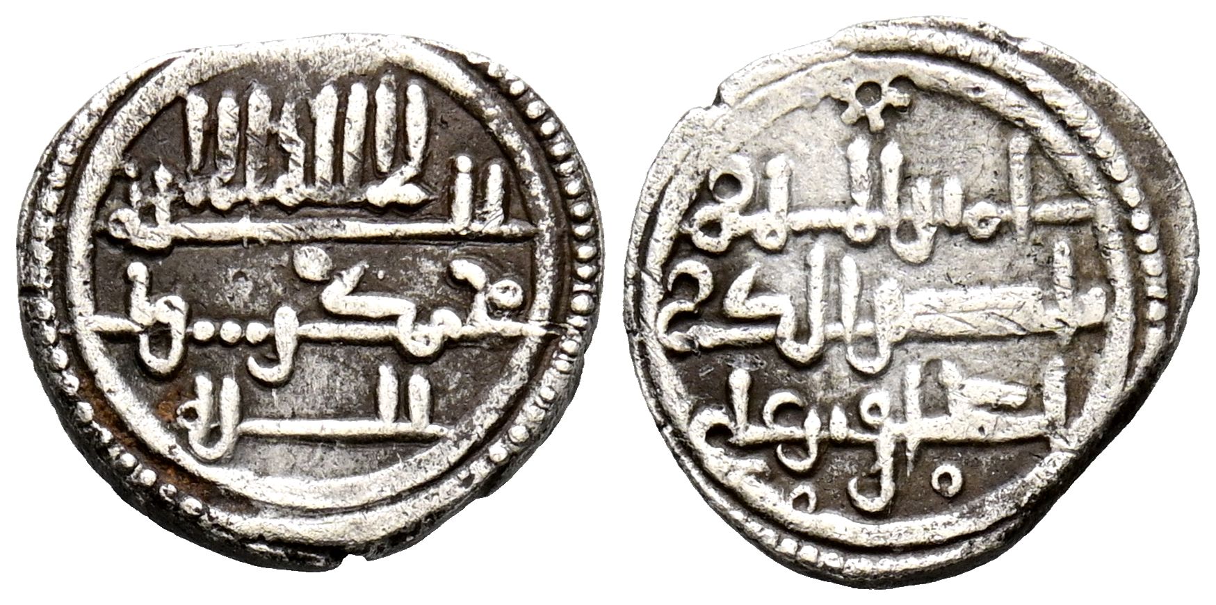 ALMORAVIDES. Isahq B. 'Ali. Get rid of yourself. (Ar. 0.87g/12mm). 540-541H. (Vives 1895; Benito E4). Very Fine.