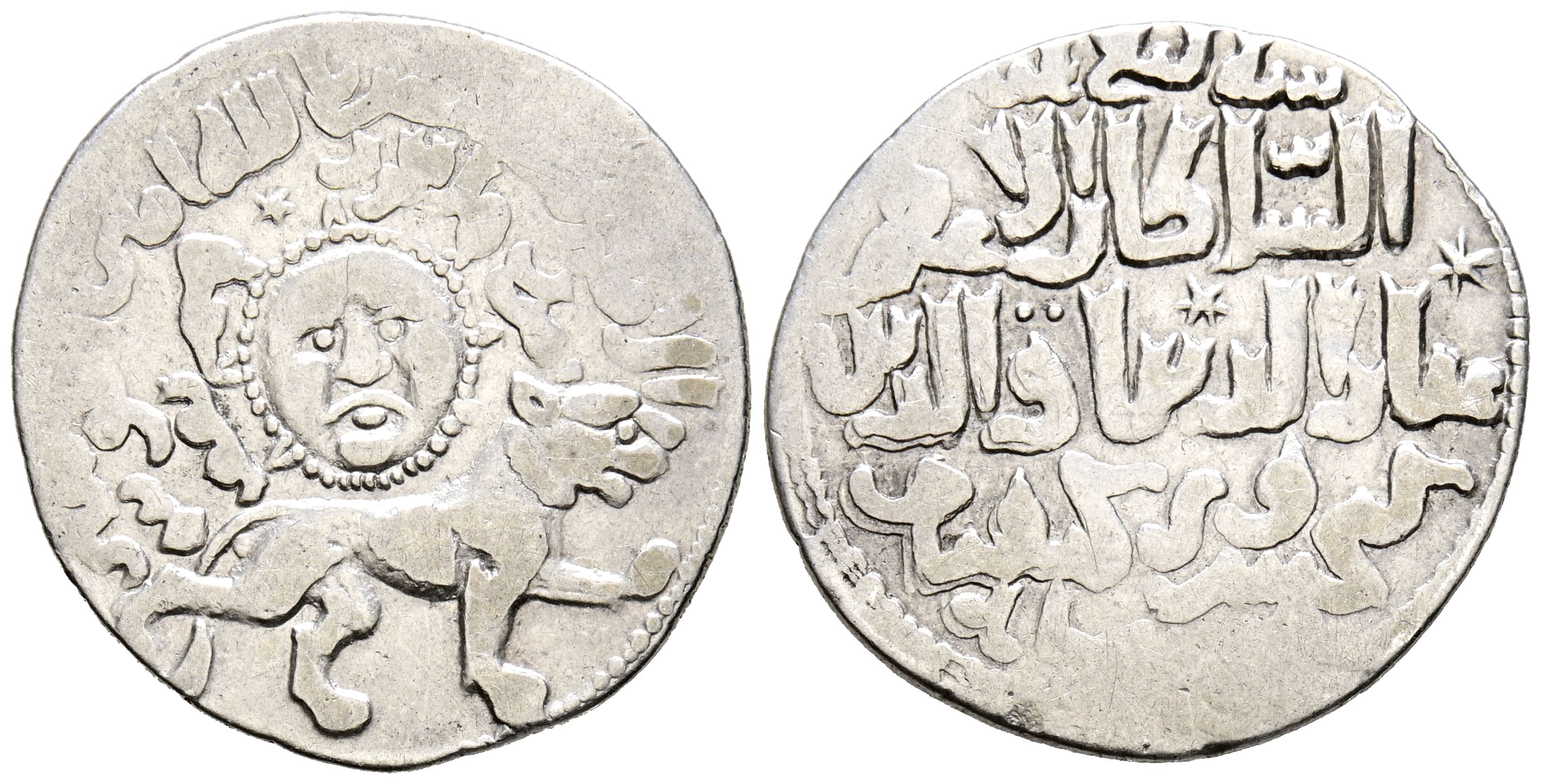 SELYUKIS OF RUM. Ghiyath al-Din Kay Khusraw II bin Kay Qubadh (634-644H). Dirham. (Ar. 2.88g/23mm). 639H. Konya. Anv: Lion advancing to the right and personification of the sun above, around legend in the form of an arch. Rev: Legend. (Album 1218; Broome 272 D(i)a). Very Fine. Scarce.