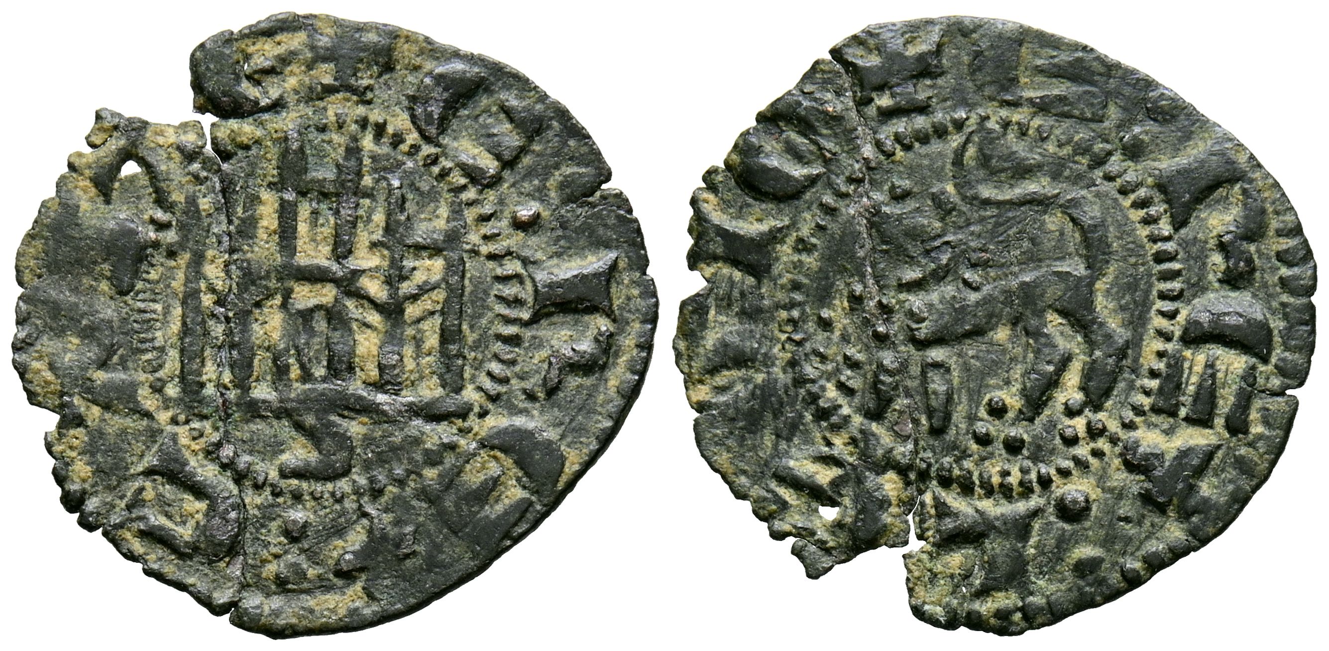 INFANT DON ENRIQUE (1259). Money. (Ve. 0.70g/18mm). Sevilla. (Imperatrix ES:1.3; FAB-292.1). Anv: Castle and below S within a circular dotted graphic, around legend: E REX CASTE. Rev: Lion standing on the left within circular graphics, around legend: E REX LEGIO. Very Fine. Limited.