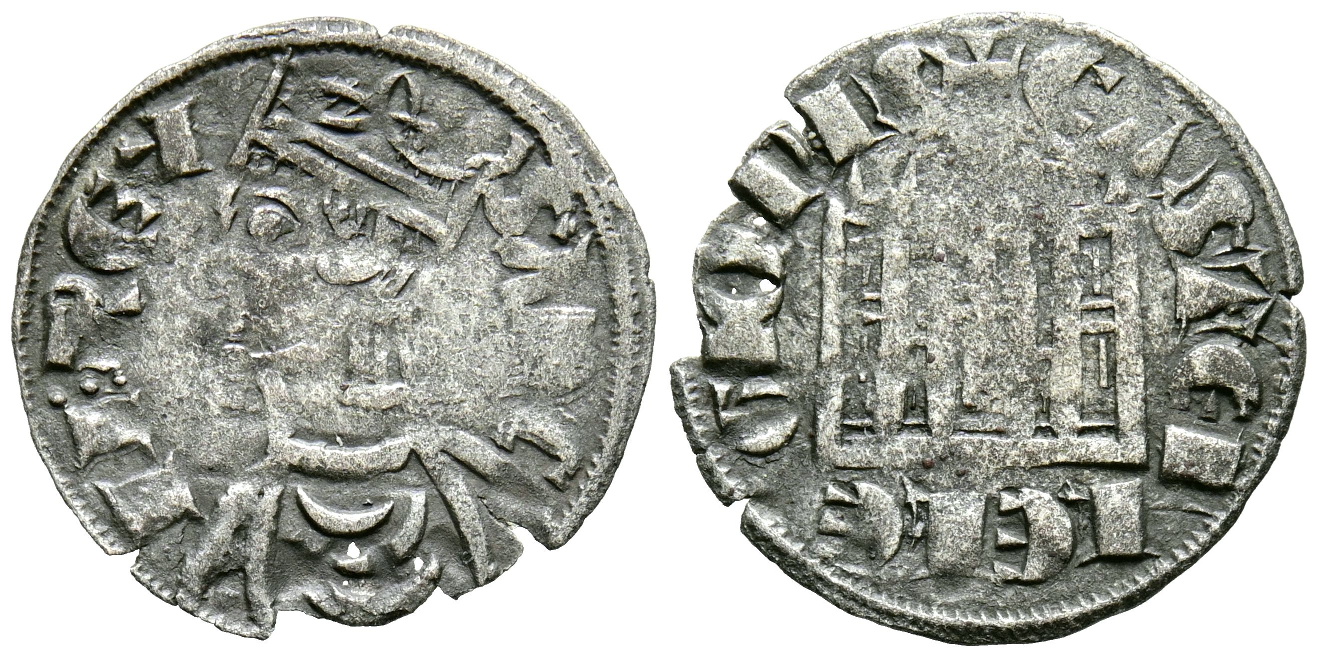 SANCHO IV (1284-1295). Money. (Ve.0.64g/18mm). Lion. (Imperatrix S4:3.24(75); FAB-296.5 var). Anv: Crowned bust of Sancho IV to the left, around legend: SANCII REX. Rev: Castle with cross on central stem without stars on the sides and with L on the door, around legend: CASTELLE E LEGIONIS. Very Fine.