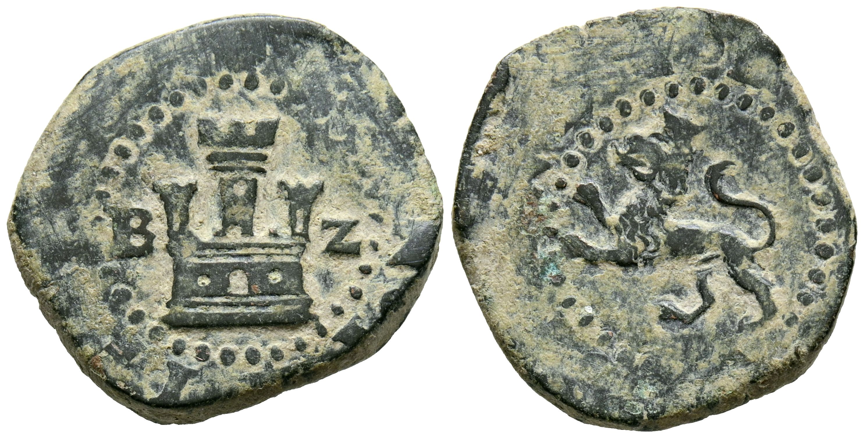 PHILIP II (1556-1598). 2 Maravedis. (Ae. 4.03g/21mm). Burgos Z. (Cal-2019-52). Very Fine.