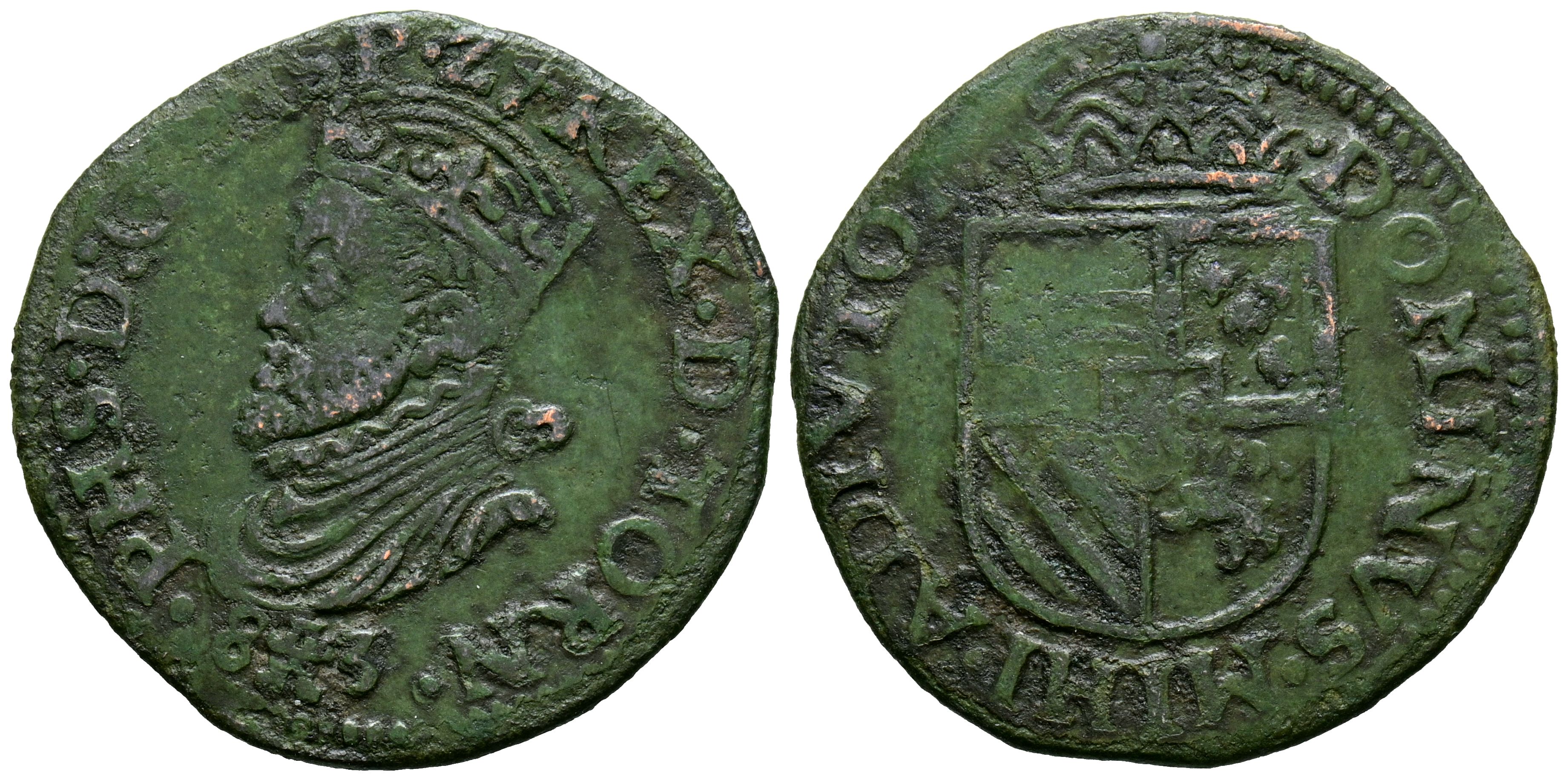 English PHILIP II (1556-1598). 1Liard. (Ae. 4.13g/26mm). 1583. Tournai. (Vicenti 607). Very Fine. Limited.