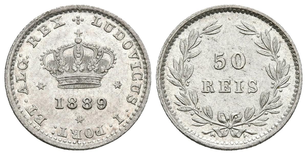 PORTUGAL. Luis I. 50 Reis. 1898. Km#506.2. Ar. 1,25g. EBC.