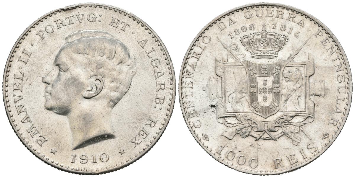 PORTUGAL. Manuel II. 1000 Reis. 1910. Centenario de la Guerra peninsular. Km#558; Gomes 07.01. Ar. 25,03g. MBC+.