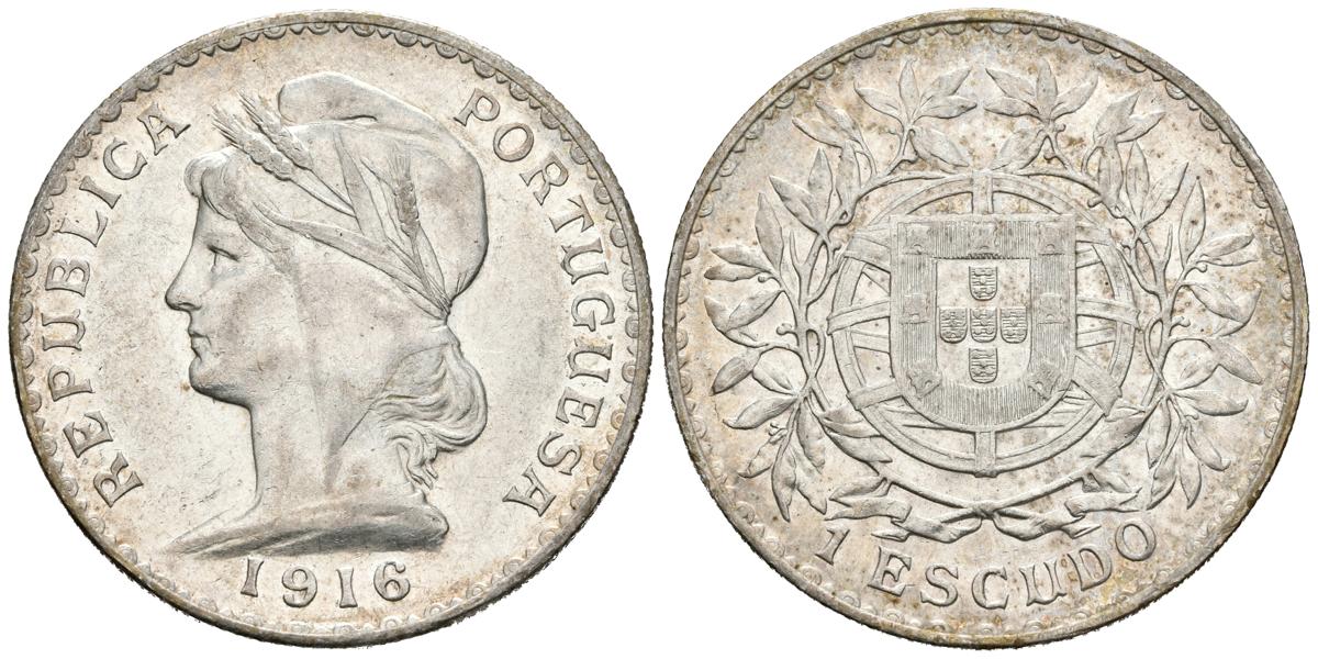 PORTUGAL. 1 Escudo. 1916. Km#564; Gomes 23.2. Ar. 24,88g. Leves marquitas y brillo original. EBC.