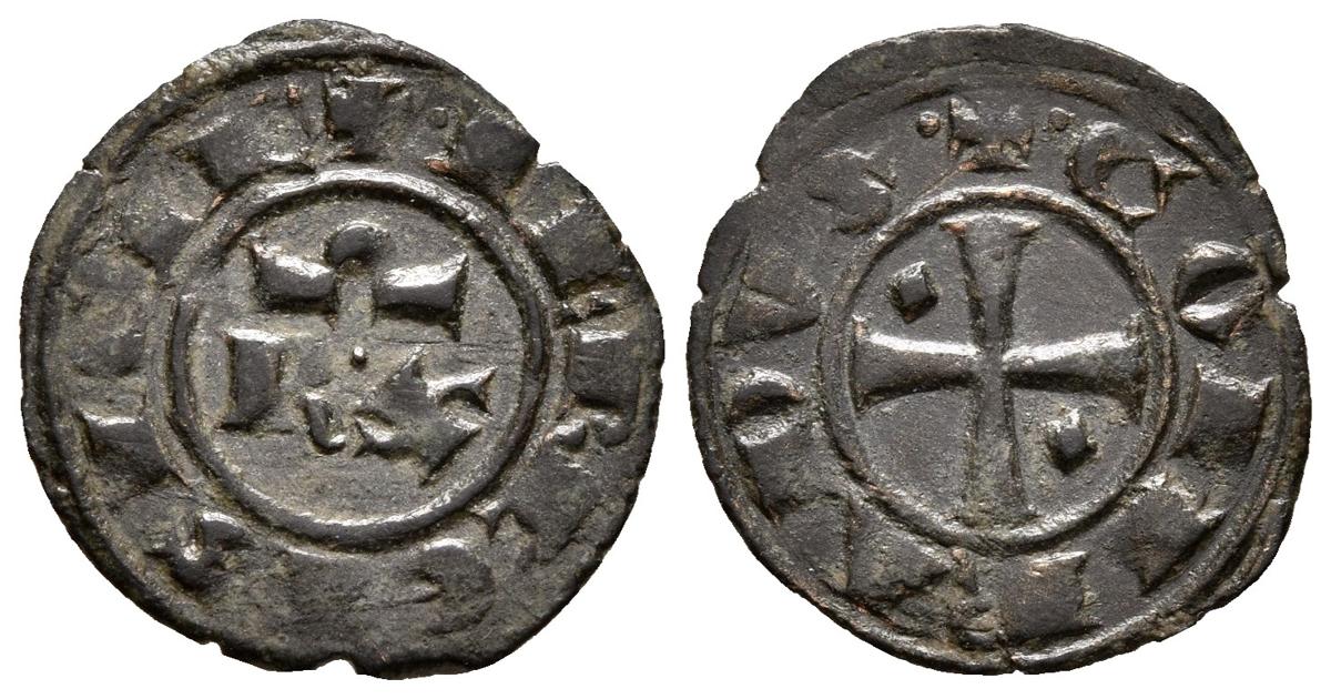 SICILIA. Corrado I. Dinero. (1250-1254). Messina. A/ Leyenda: + CONRADVS. R/ Leyenda: +.IERL' ET SICIL'. Spahr 156; MEC 579. Ae. 0,76g. MBC+.