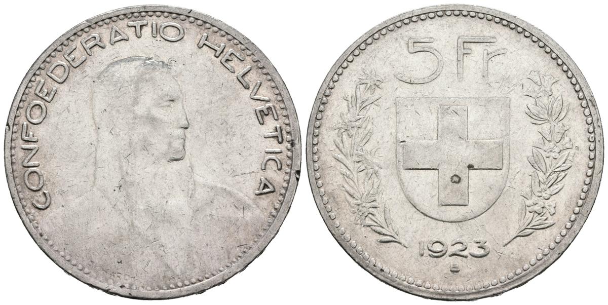 SUIZA. 5 Francs. 1923. Bern B. Km#37. Ar. 25,00g. Golpecitos. MBC.