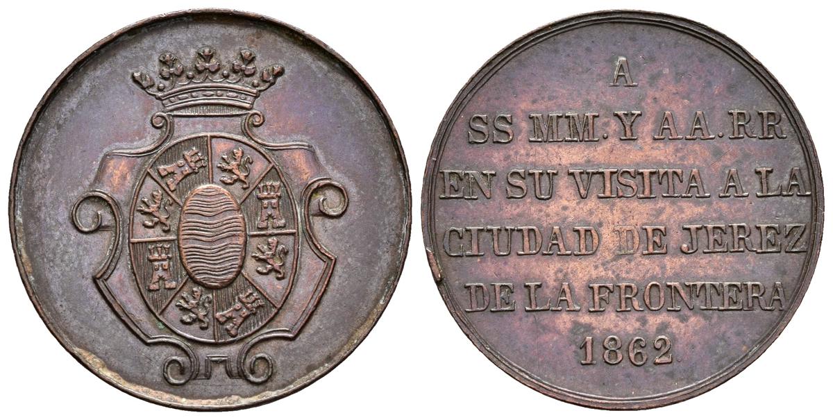 ISABEL II. Medalla. 1862. Visita a la ciudad de Jerez de la Frontera. V. 431. Ae. 5,93g. EBC-.