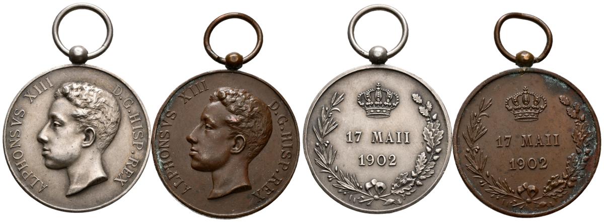 ALFONSO XII. Medalla. 1902. Tipo bronce y plata. 17 de Mayo, Jura de la Constitución. Ae-Ar. MBC+/EBC-.