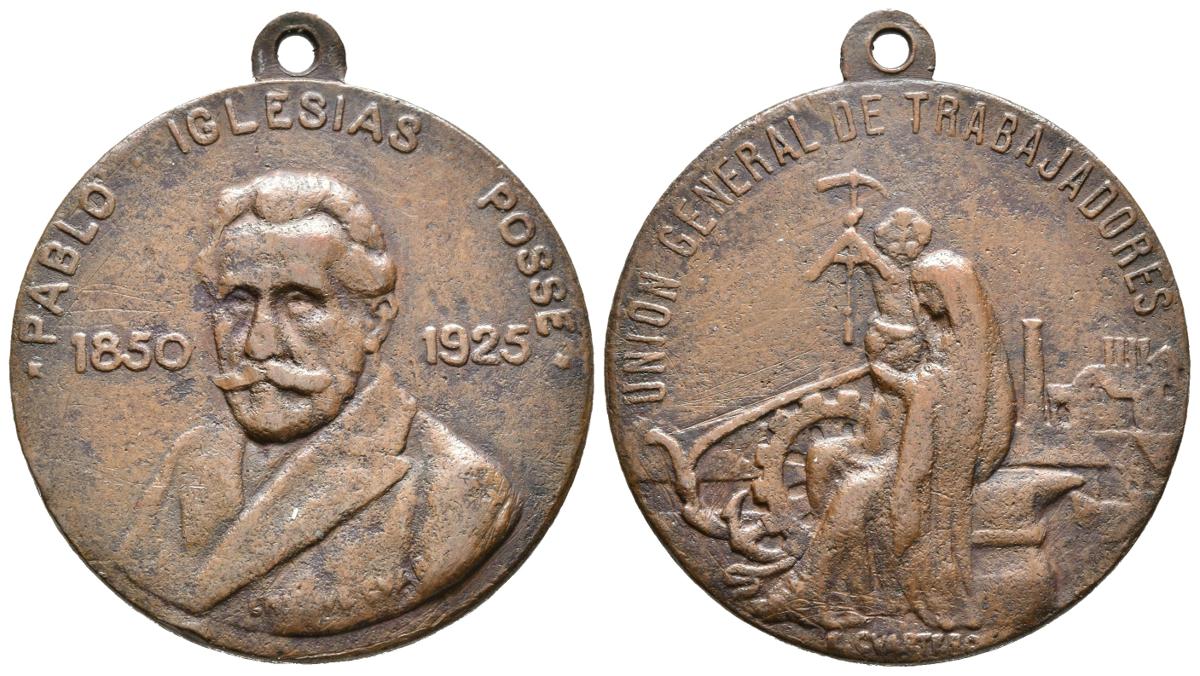 UNION GENERAL DE TRABAJADORES. Medalla. 1850-1925. Pablo Iglesias Posse. Grabador: Enrique Cuartero N. Ae. 30mm. MBC.