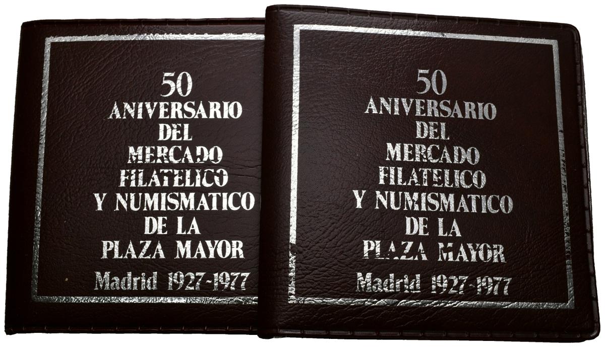 50 ANIVERSARIO DEL MERCADO NUMISMATICO Y FILATELICO DE LA PLAZA MAYOR. Medalla. 1927-1977. Madrid. Tirada de 1000 medallas numeradas. Ar. 35mm. Presentadas en estuche oficial con certificado. (2 Unidades). PROOF.