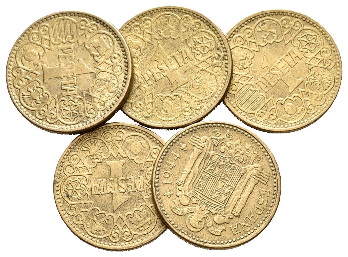 ESTADO ESPAÑOL. Lote compuesto por 5 monedas de 1 Peseta. 1944. Cal-74. MBC+/EBC. A EXAMINAR.