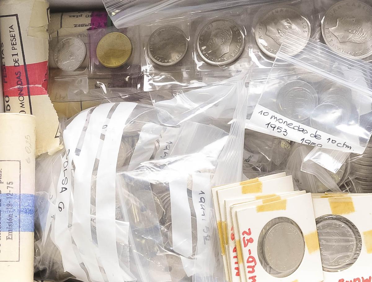 ESTADO ESPAÑOL y JUAN CARLOS I. Lote compuesto por cientos de monedas de ambos periodos, incluye 6 cartuchos, gran cantidad de monedas sin circular y años escasos. Conjunto muy comercial. A EXAMINAR.