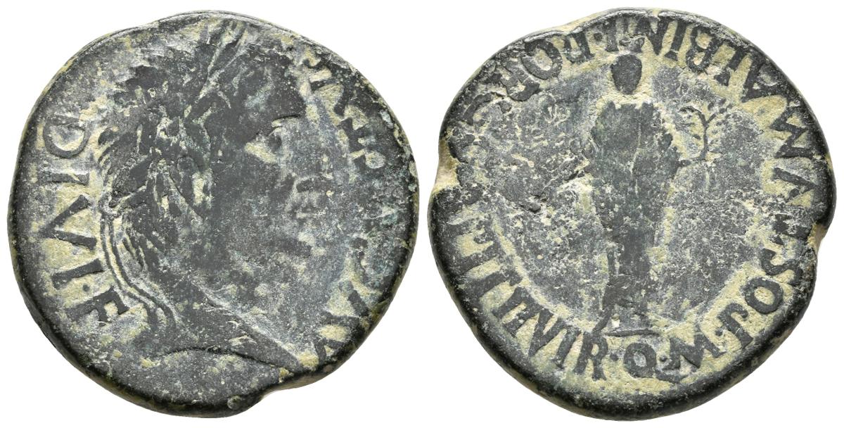CARTAGONOVA. As. Epoca de Augusto. 27 a.C.-14 d.C. Cartagena (Murcia). A/ Cabeza laureada de Augusto a derecha, alrededor AVGVSTVS DIVI F. R/ Sacerdote de frente, alrededor leyenda M. POSTVM. ALBIN. L. PORC. CAPIT. II VIR. Q. FAB-576. Ae. 13,11g. MBC.