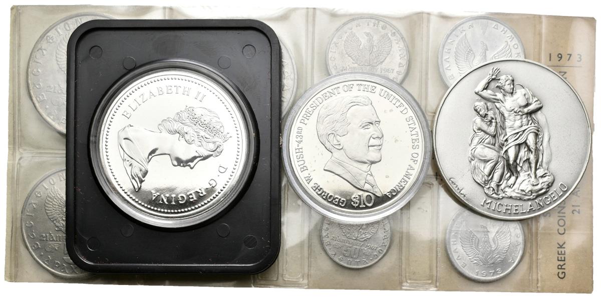 MUNDIAL. Lote compuesto por: Canadá 1 Dollar 1975; Vaticano Medalla 1994; Liberia 10 Dollars 2004; Costa Rica Set 1975 y Grecia Set 1967. Todo presentado en estuches oficiales. Ar. Cu/Ni. SC-/PROOF.