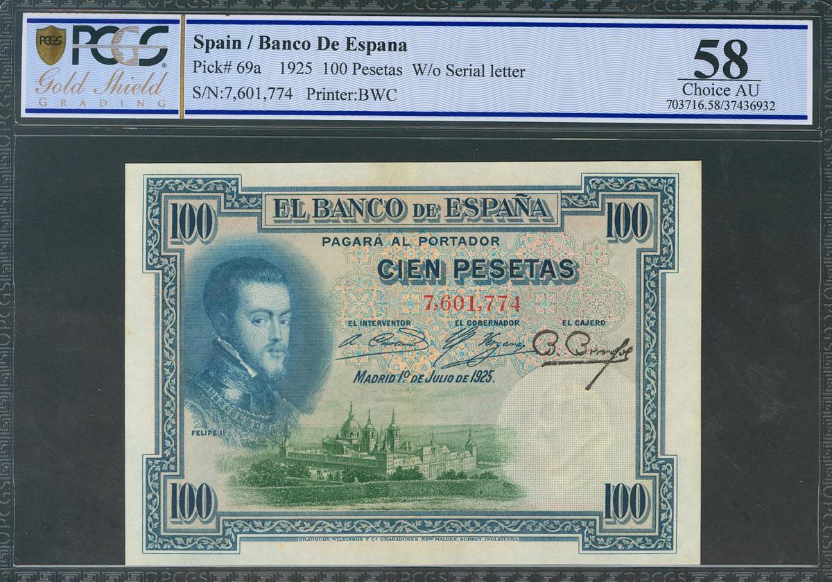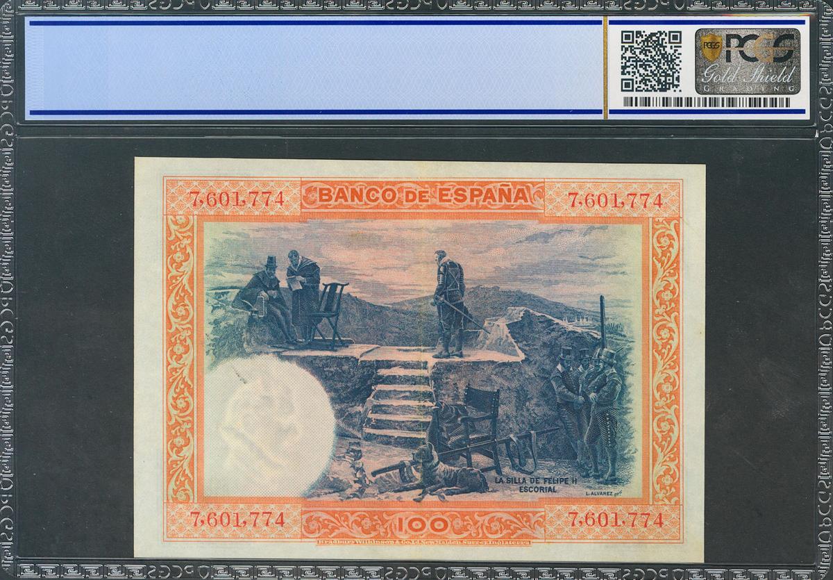 100 Pesetas. 1 de Julio de 1925. Sin serie. (Edifil 2017: 323, Pick: 69a). Encapsulado PCGS58. EBC+.