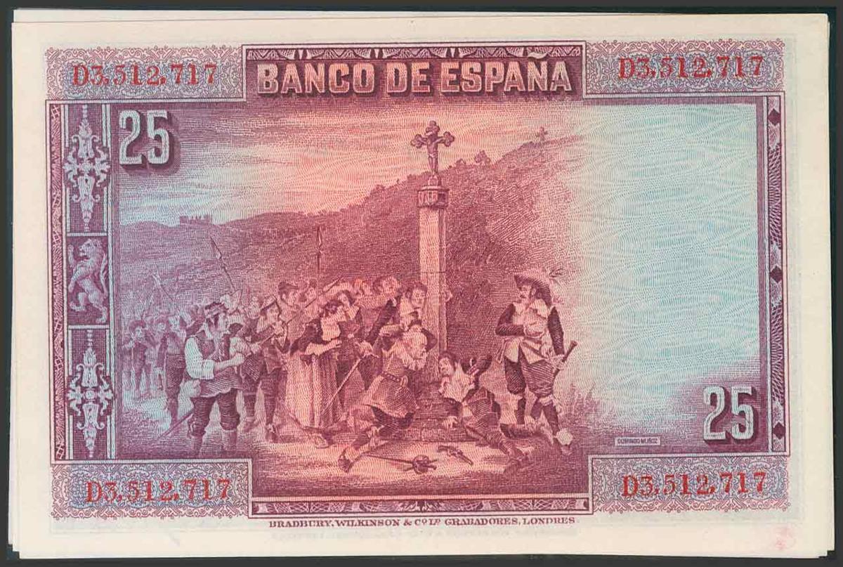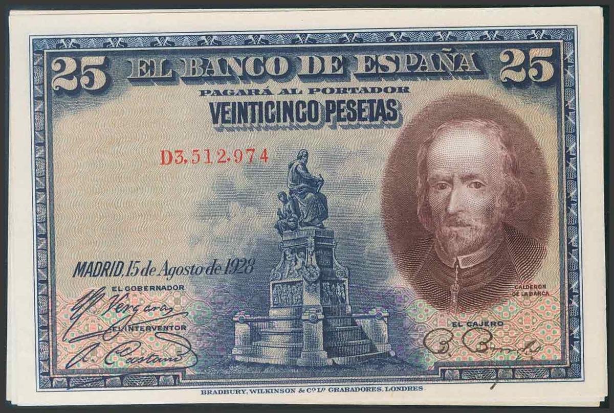 25 Pesetas. 15 de Agosto de 1928. Tres billetes de diferentes series. Serie E-D. (Edifil 2017: 353). SC.