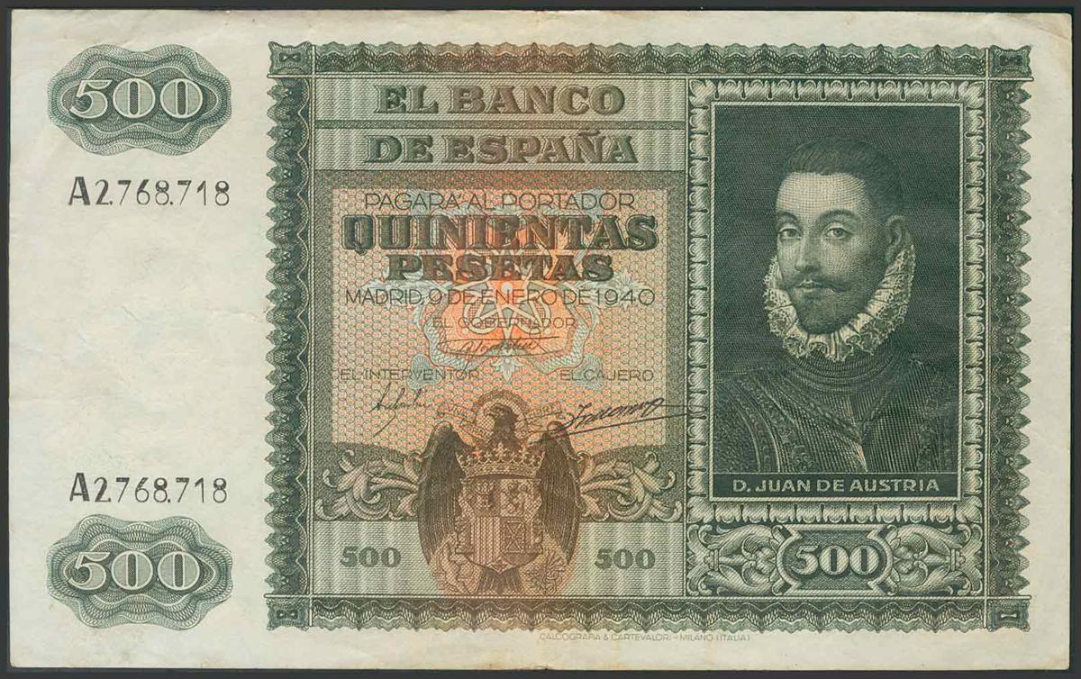500 Pesetas. 9 de Enero de 1940. Serie A. (Edifil 2017: 439). MBC.