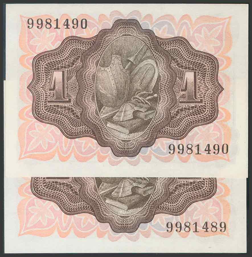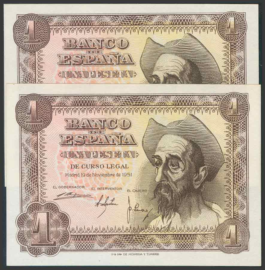 1 Peseta. 19 de Noviembre de 1951. Pareja correlativa. Sin serie. (Edifil 2017: 461). Apresto original. SC.