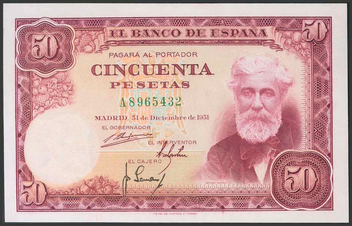 50 Pesetas. 31 de Diciembre de 1951. Serie A. (Edifil 2017: 462a). Apresto original. SC.
