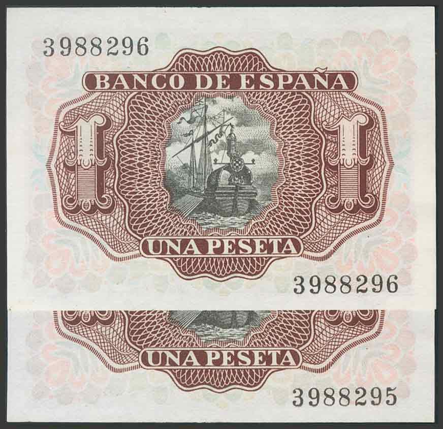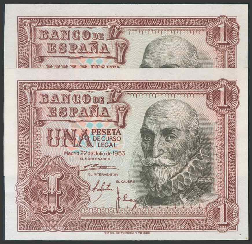 1 Peseta. 22 de Julio de 1953. Pareja correlativa. Sin serie. (Edifil 2017: 465). SC-.