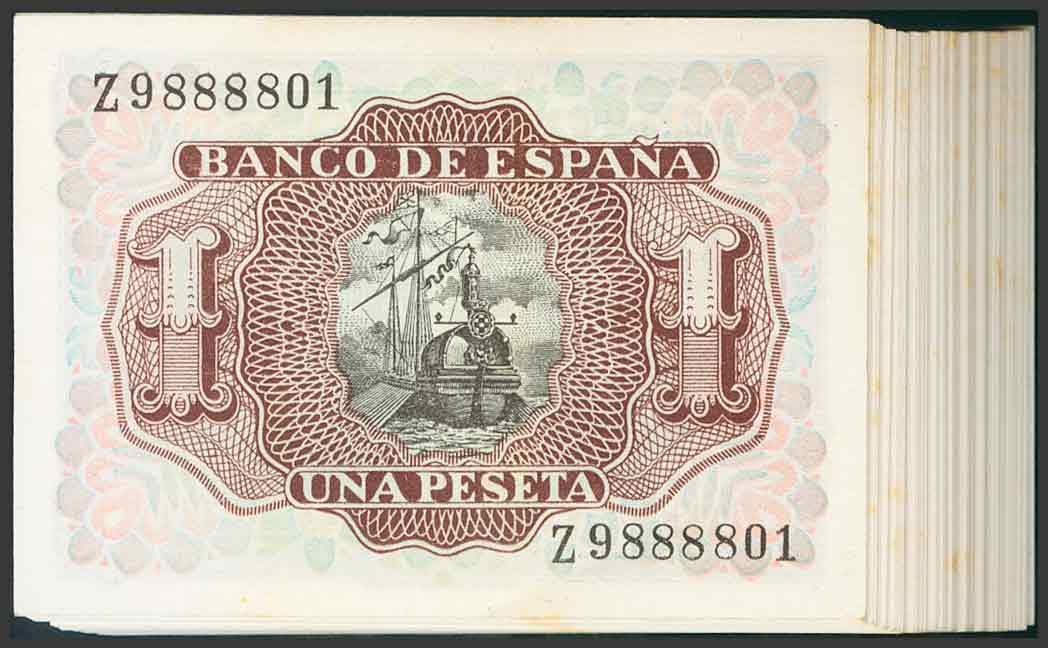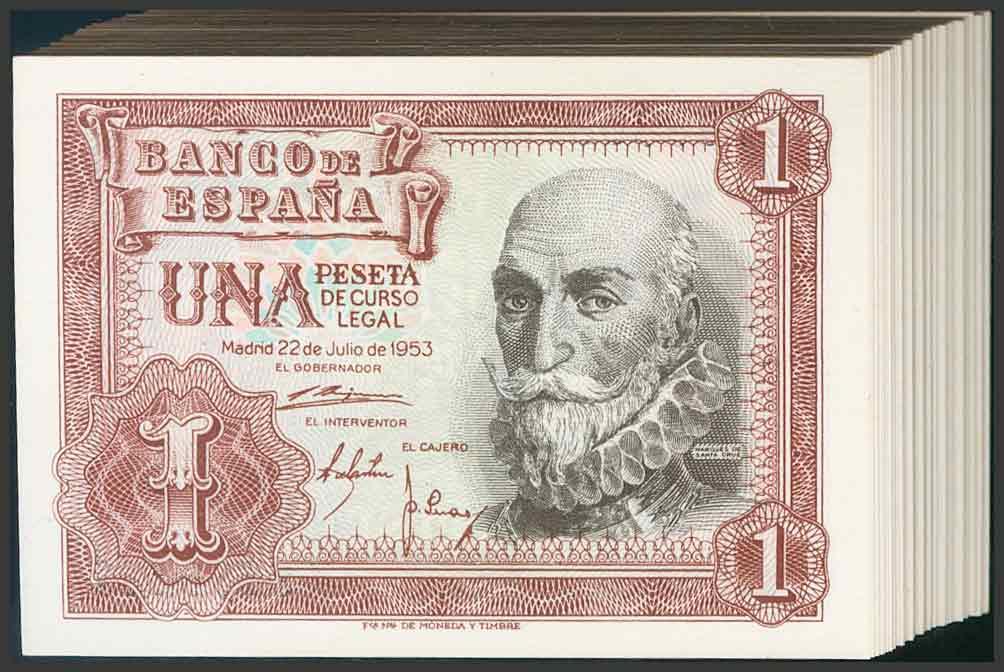 Conjunto de 81 billetes correlativos de 1 Peseta emitidos el 22 de Julio de 1953 de la serie Z (Edifil 2017: 465b). SC/SC-.