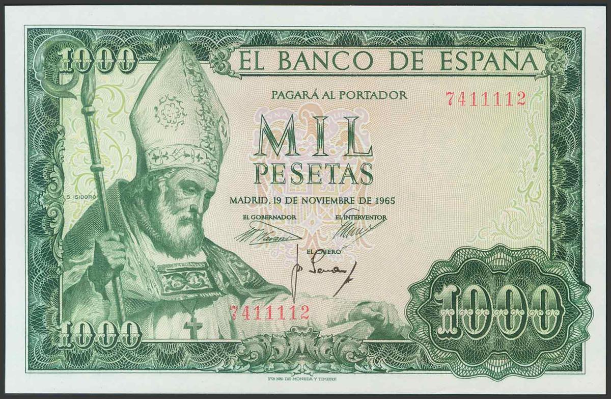1000 Pesetas. 19 de Noviembre de 1965. Sin serie. (Edifil 2017: 471). Apresto original. SC-.