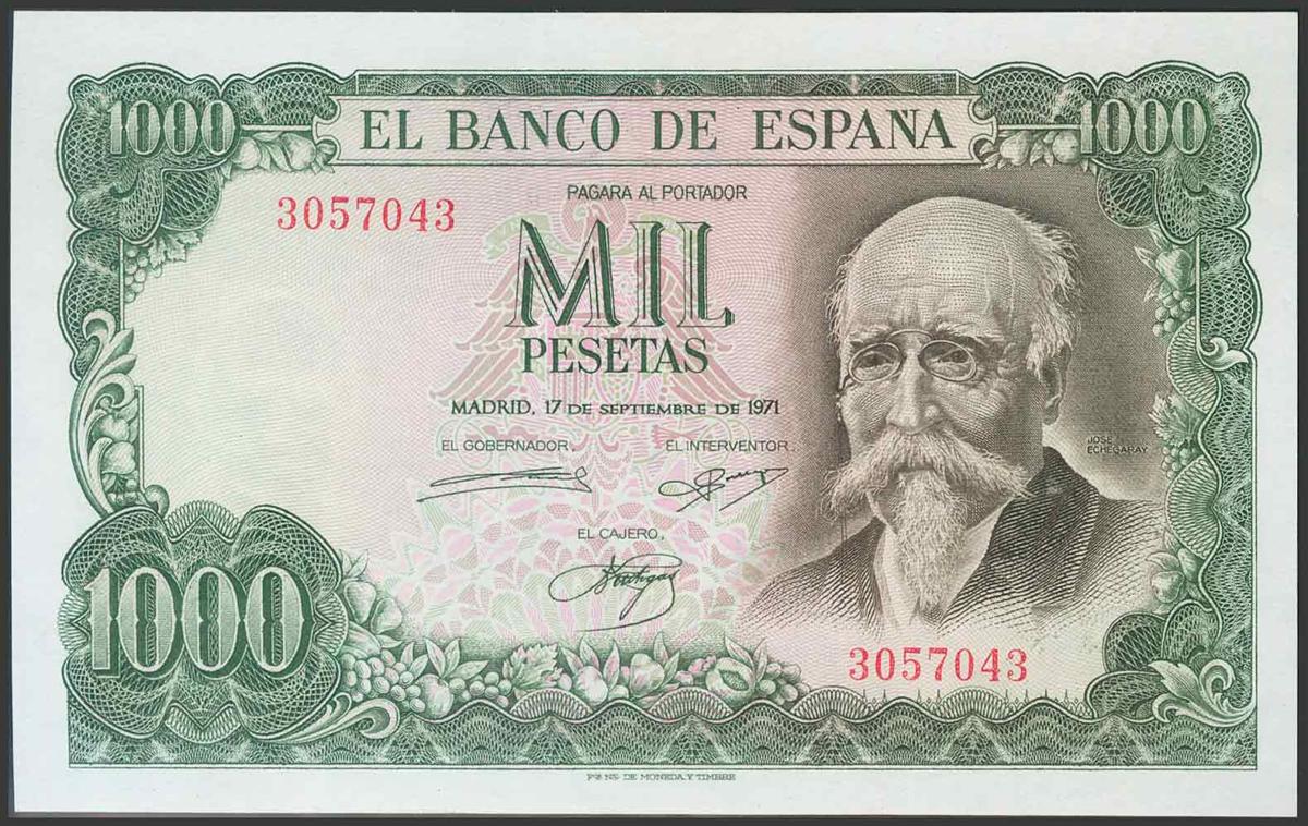 1000 Pesetas. 17 de Septiembre de 1971. Sin serie. (Edifil 2017: 474). Apresto original. SC.