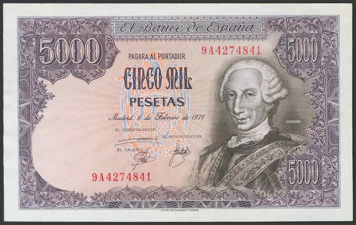 5000 Pesetas. 6 de Febrero de 1976. Serie especial 9A. (Edifil 2017: 475b). EBC.