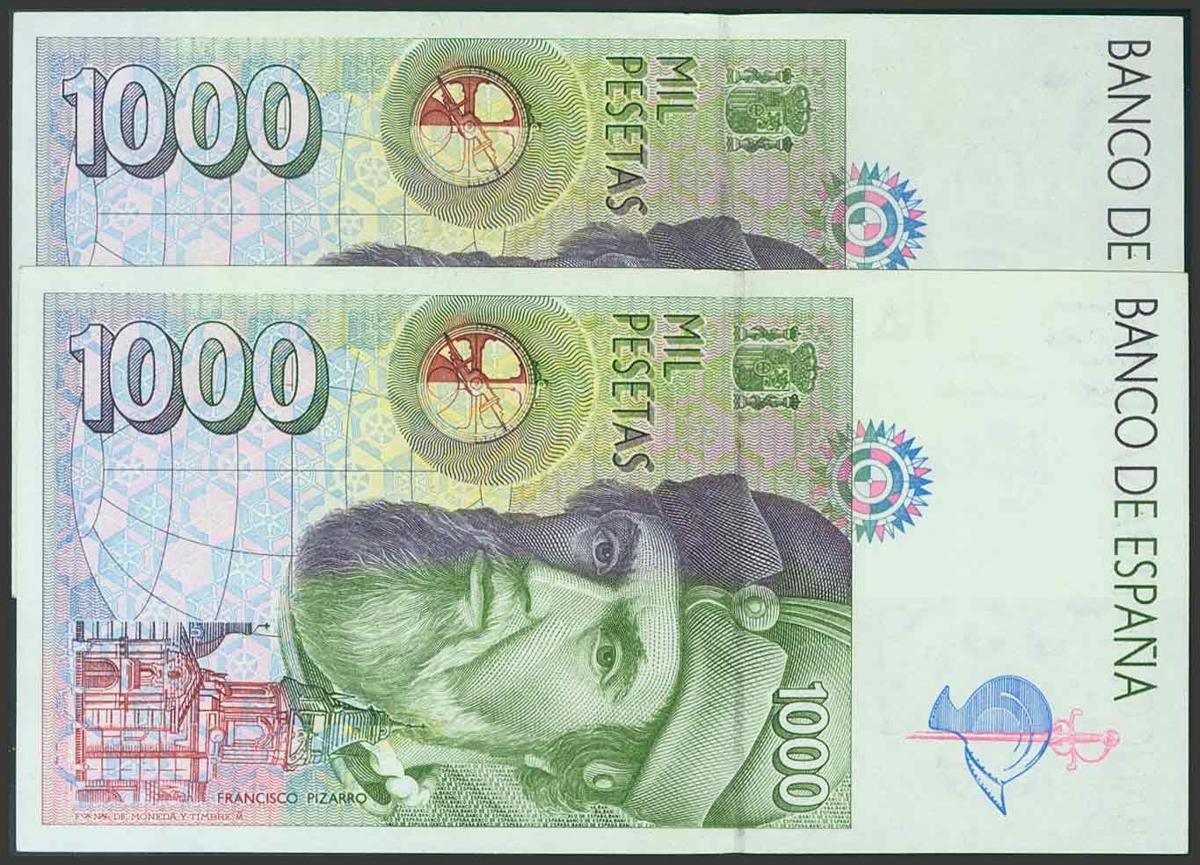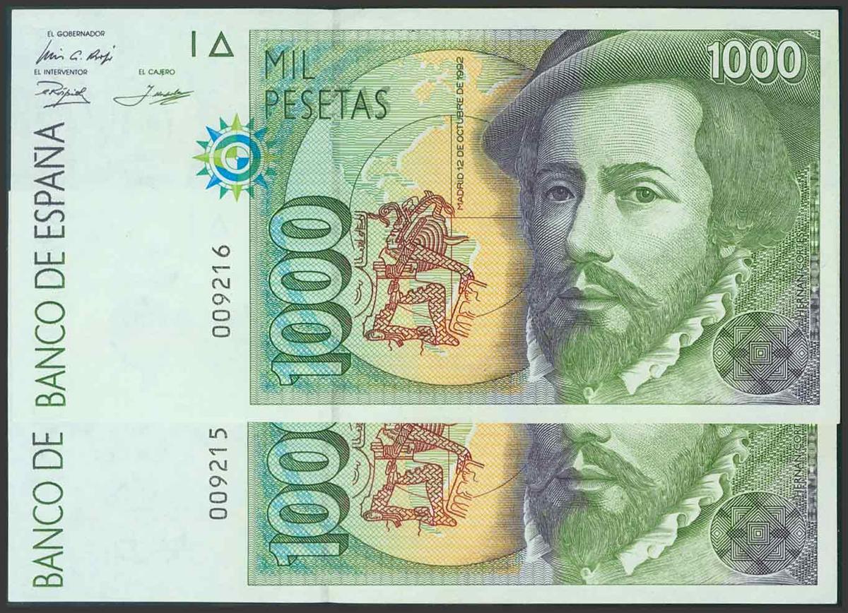 1000 Pesetas. 12 de Octubre de 1992. Pareja correlativa. Sin serie. (Edifil 2017: 483). Apresto original. SC.