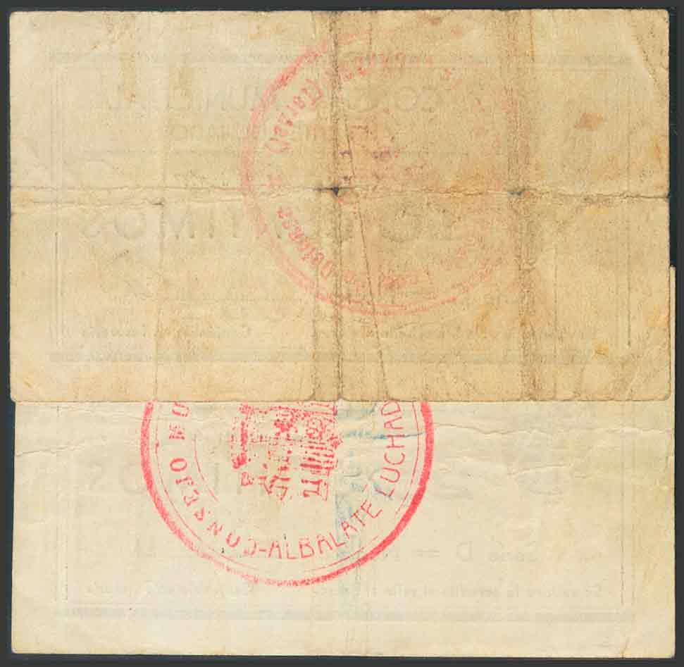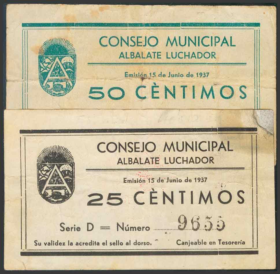 ALBALATE (TERUEL). 25 Céntimos (esquina reparada) y 50 Céntimos. 15 de Junio de 1937. (González: 173, 174). RC.