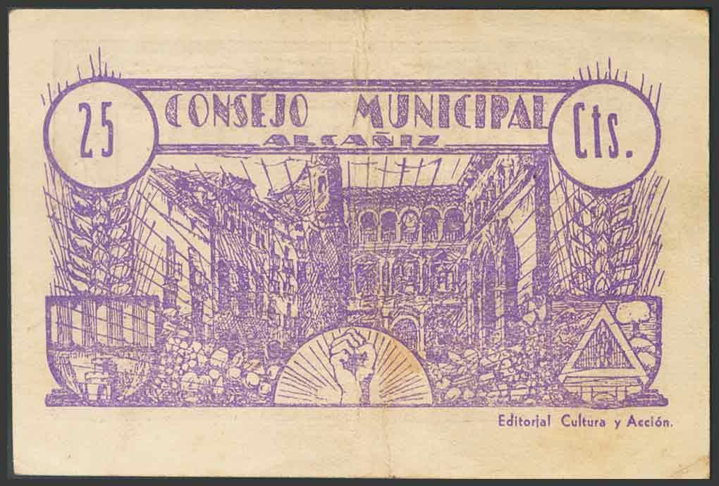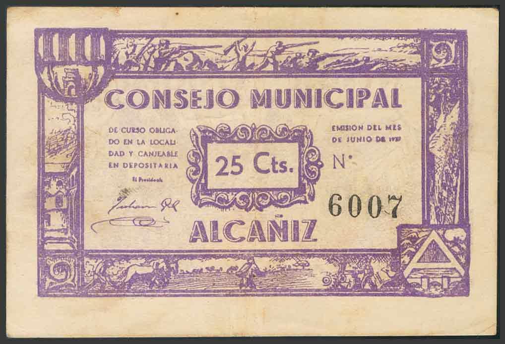 ALCAÑIZ (TERUEL). 25 Céntimos. Junio de 1937. (González: 299). BC.