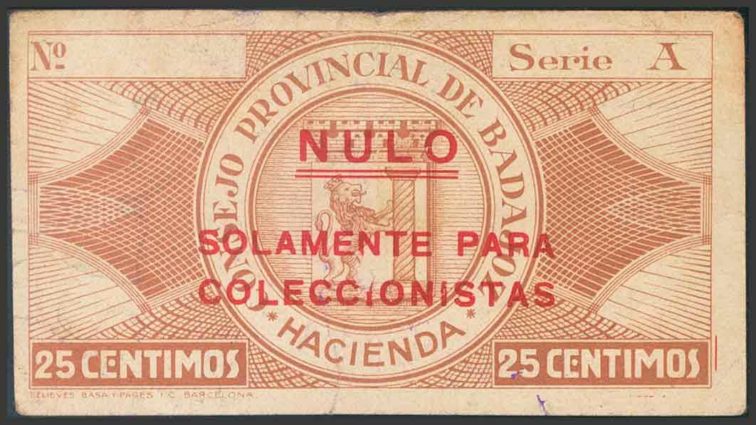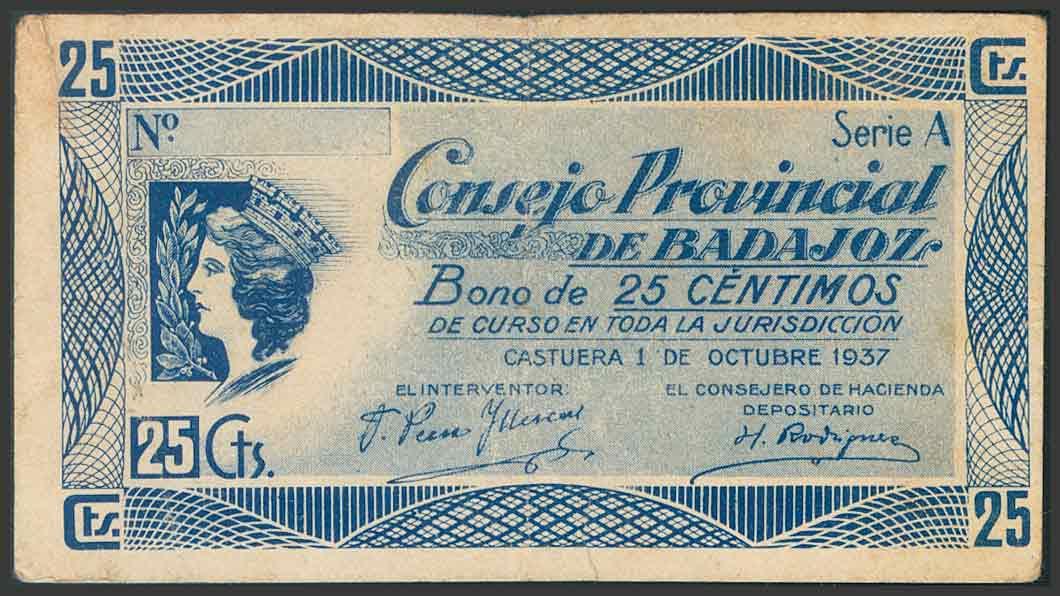 BADAJOZ. 25 Céntimos. 1 de Octubre de 1937. Serie A. (González: 834). BC.