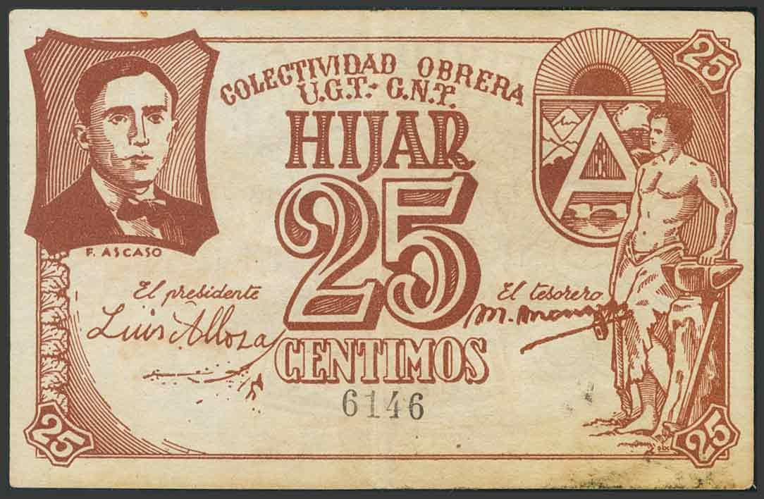 HIJAR (TERUEL). 25 Céntimos. (1937ca). (Gónzalez: 2849). BC. Ex Martí Hervera y Soler y Llach.