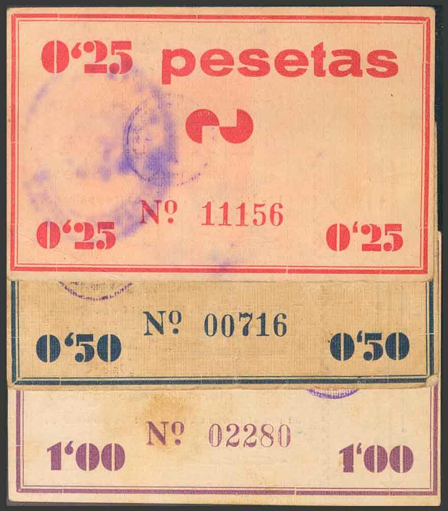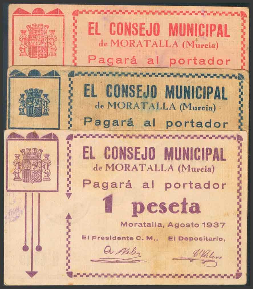 MORATALLA (MURCIA). 25 Céntimos, 50 Céntimos y 1 Peseta. Agosto de 1937). (González: 3709/11). MBC/BC.