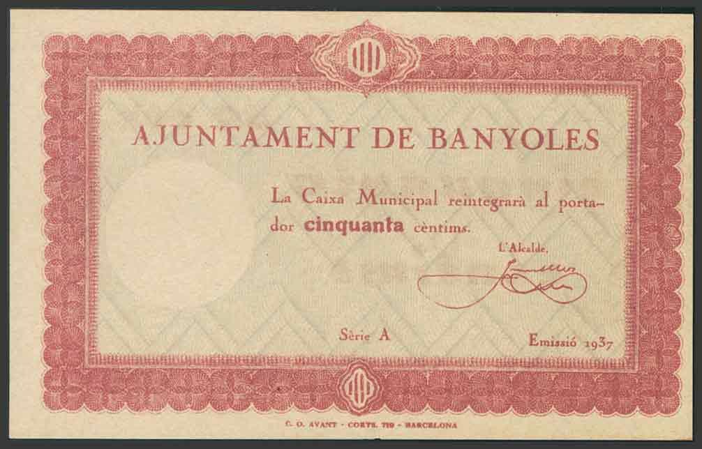 BANYOLES (GERONA). 50 Céntimos. 1937. Serie A. (González: 6505). SC.