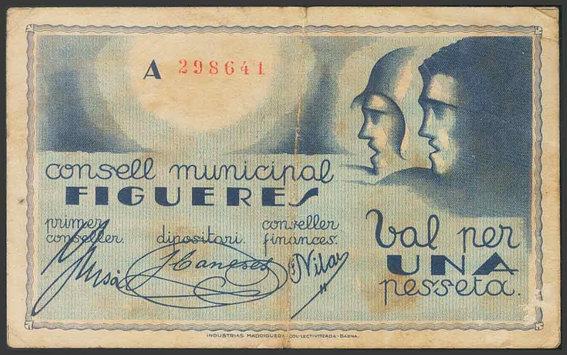 FIGUERES (GERONA). 1 Peseta. Marzo de 1937. Serie A. (González: 7850). RC.