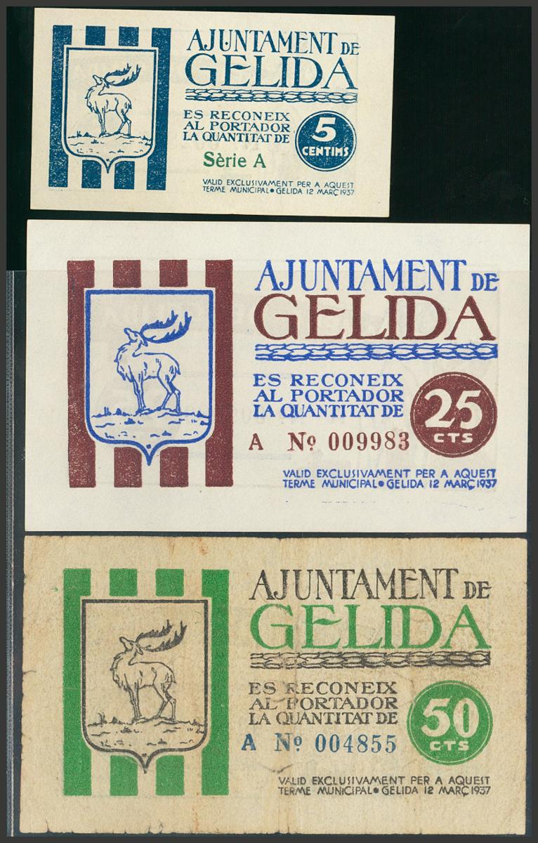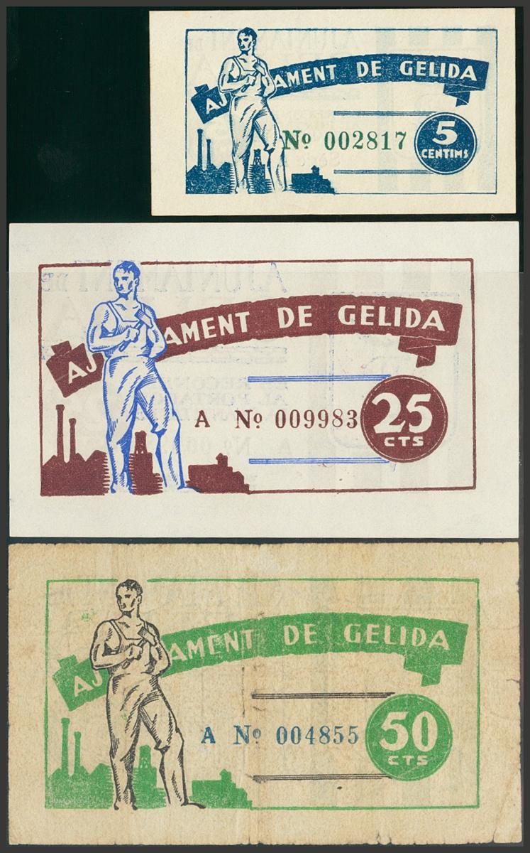 GELIDA (BARCELONA). 5 Céntimos, 25 Céntimos y 50 Céntimos. 12 de Marzo de 1937. (González: 8011, 8014, 8016). SC/RC.