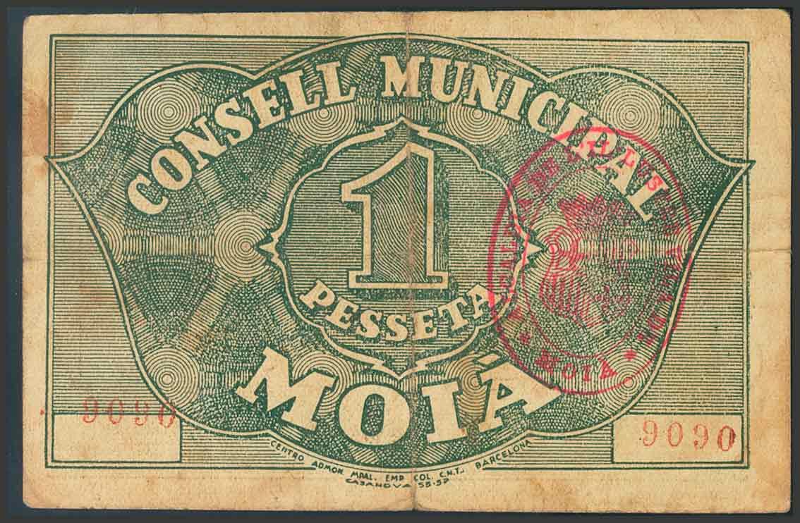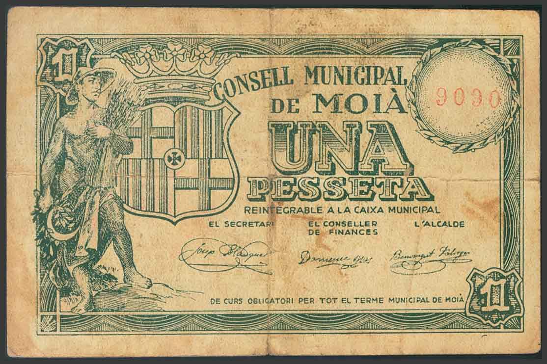 MOIA (BARCELONA). 1 Peseta. (1940ca). (González: 8690). RC.